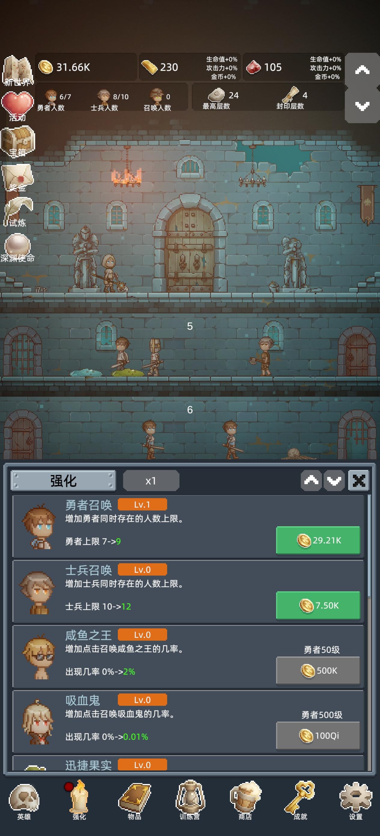 《保管好贵重物品》核心攻略 这款像素风放置挂机手游,核心玩法是“转生叠buff+资源巧分配”,零氪也能轻松上手。前期按“短平快”转生节奏,100-105关就重置,30分钟一转叠加永久属性,效率最高。 资源分配是关键:金砖全买“勇者之赐”,群体攻击加成性价比拉满;红宝石优先升4号兵移速,刷试炼效率翻倍;珍珠优先换红宝石,缺口极大。 宝箱别乱开,双倍留给成就或百层宝箱,开出不满意可秒