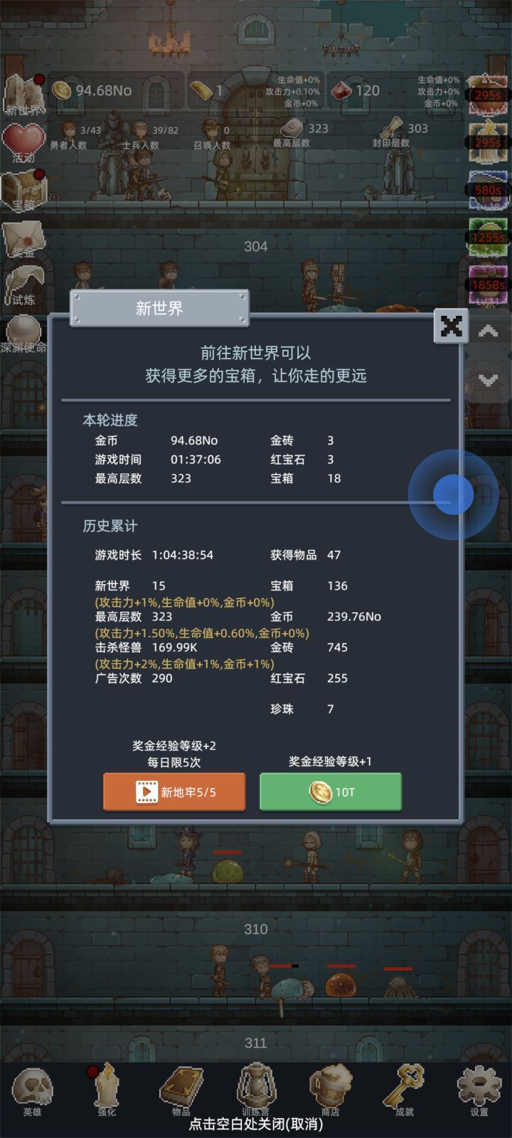 三天,我终于也能打满试炼了,打法就是 1010 级勇者+16 级士兵,士兵只开一级