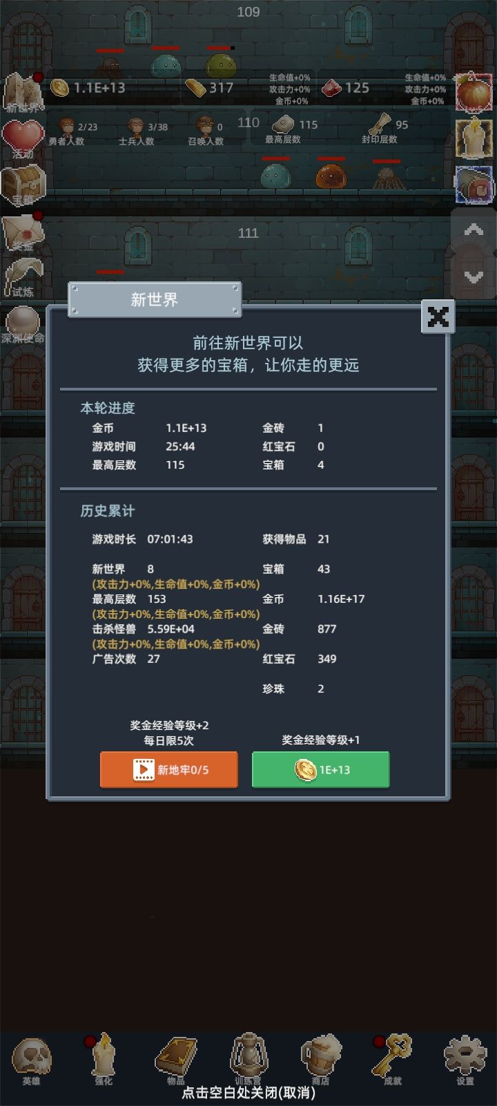 三天,我终于也能打满试炼了,打法就是 1010 级勇者+16 级士兵,士兵只开一级