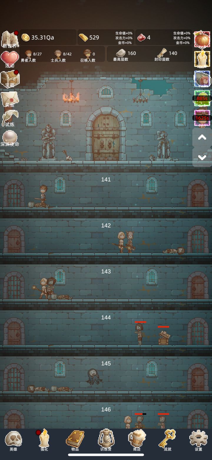 转生次数越多越强,整体体验挺不错。像素画风但形象鲜明,玩法挺肝,自动战斗+挂机养成,上班摸鱼、通勤打发时间都很合适。 游戏没有强制广告,也不逼氪,零氪爽玩。阵容搭配、转生养成有一定策略性,不是无脑点点点,越玩越有成就感。 而且刷点很高,适合收集癖玩家,多次转生也不会感到腻味,休闲解压首选,想要打发时间的话推荐一试👍🏻