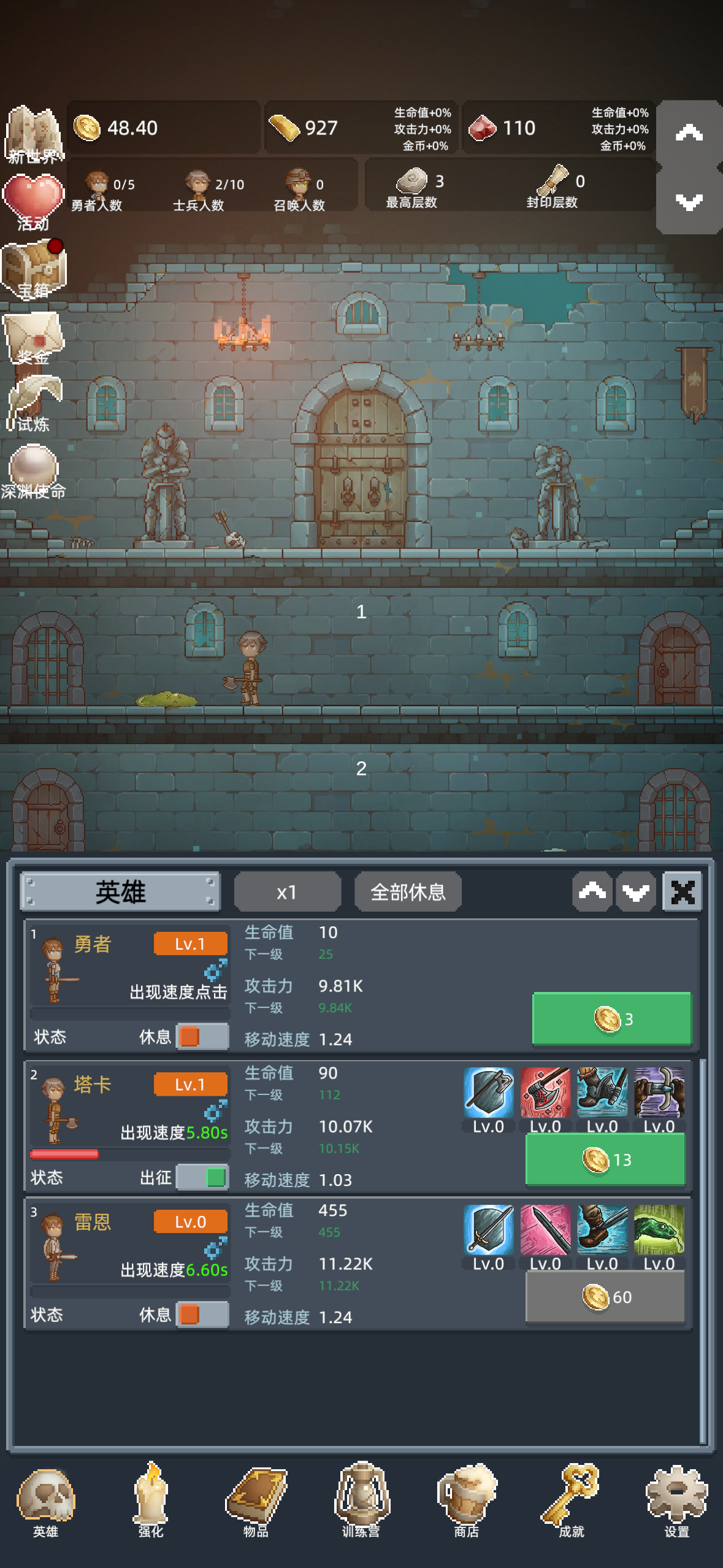 非常好玩的游戏,开局兑换码一领,金砖升级勇者之赐,推图简单很多,很适合摸鱼的时候玩。