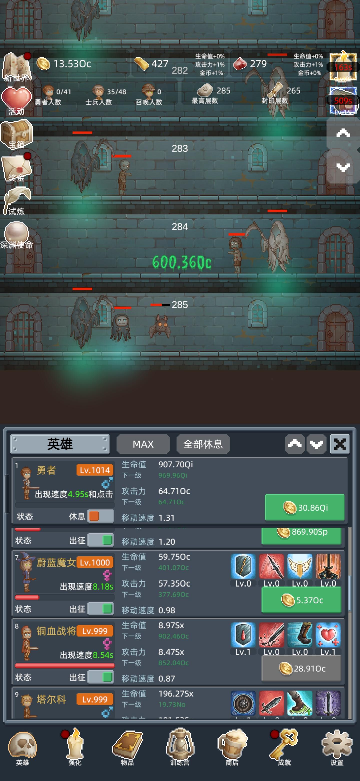 如果卡关了,想冲一下高层的话有三个小技巧。 第一个就是利用时间去堆,不过不要,直接挂机,挂机太慢了,你可以挂个小窗而且可以把游戏重复退出,再进入刷一下宝箱怪。 第二个就是如果玩到后期的话,有些。英雄是升到1000级以后,战力有质的变化的,可以尝试把那些英雄升到1000级。或者等到。能升到2000级的时候,它也会产生质变。 第三个就比较慢了,如果要到高层的话,可能需要自己不断重生,把一些物品的
