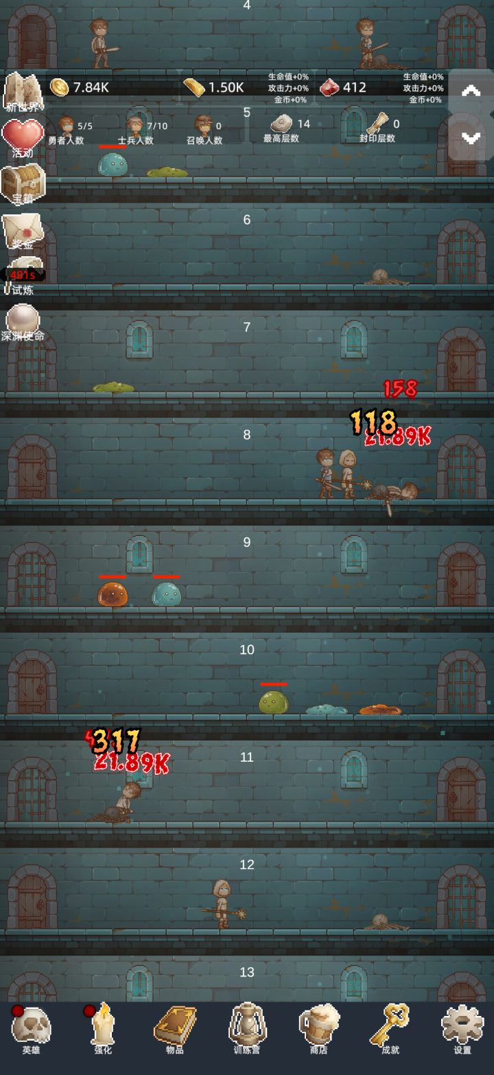很早之前就玩过类似的游戏,应该叫魔塔,还有几个类似的游戏,QQ的疯狂打怪兽,点杀泰坦之类的,玩法核心大概清楚,基本都是刷宝物,升级宝物冲刺更高层,之前那些游戏活了一段时间,这款游戏让我又有了当时的兴趣,我会在这个游戏里继续玩下去,加油!