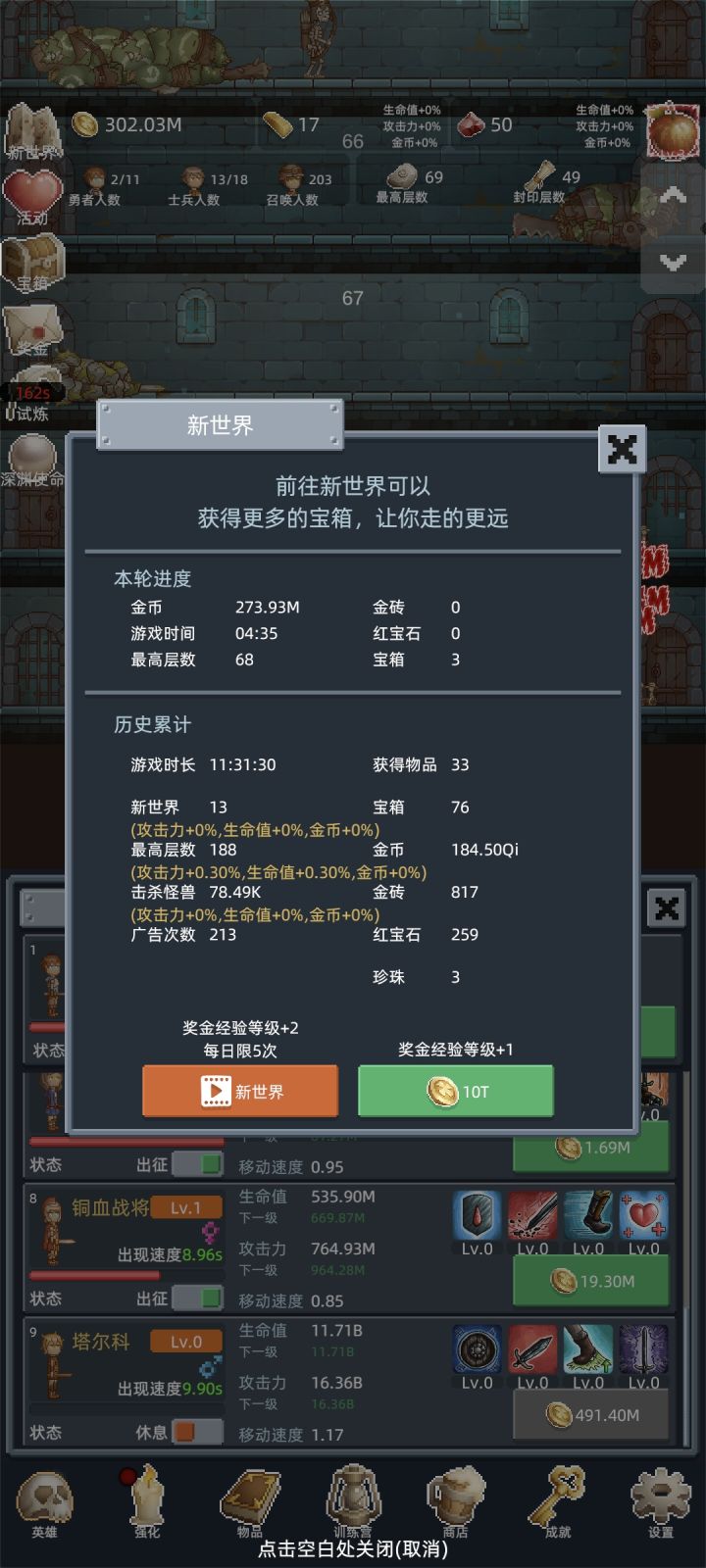 转生次数越多越强,整体体验挺不错。像素画风但形象鲜明,玩法挺肝,自动战斗+挂机养成,上班摸鱼、通勤打发时间都很合适。 游戏没有强制广告,也不逼氪,零氪爽玩。阵容搭配、转生养成有一定策略性,不是无脑点点点,越玩越有成就感。 而且刷点很高,适合收集癖玩家,多次转生也不会感到腻味,休闲解压首选,想要打发时间的话推荐一试。