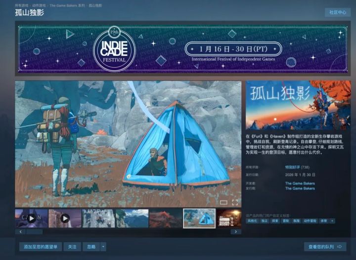 生存攀岩游戏《孤山独影》正式发售 登陆PC/PS5平台首发9折