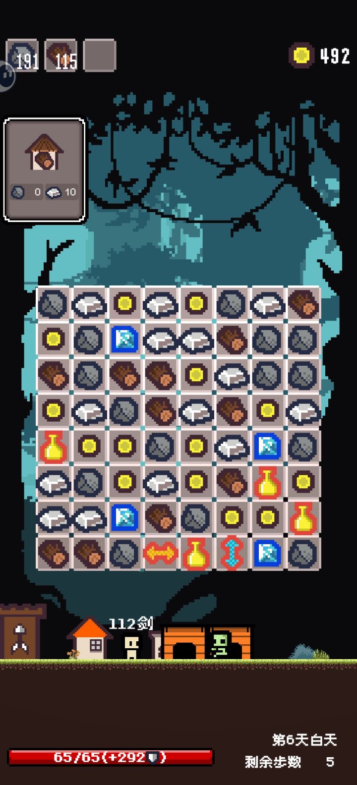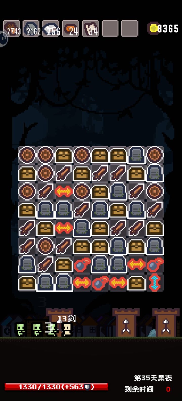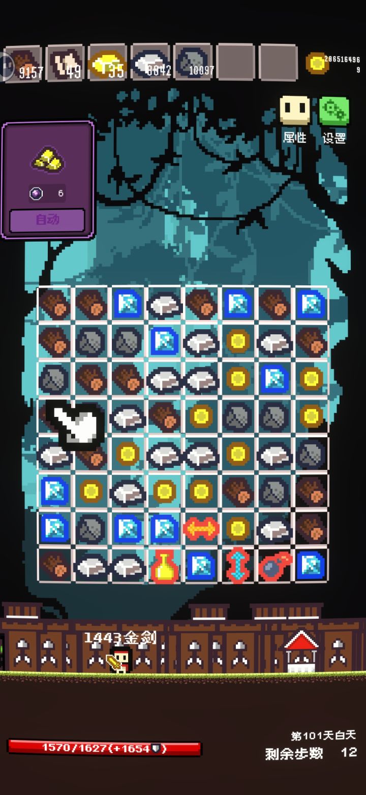已经可以开始挂机了,每回合最多吃7次伤害(大概是50以内)后面的每回合血量上限的房子已经有15个了(等效每轮75回血),后面如果没有更加高数值的怪物的话已经算是杀穿了而且钱肯定是用不完了,买的建筑甚至不用刷物资建造白天结束就直接造好了。只要不卖砖头和布的建筑,不影响前期发育就是乱杀。