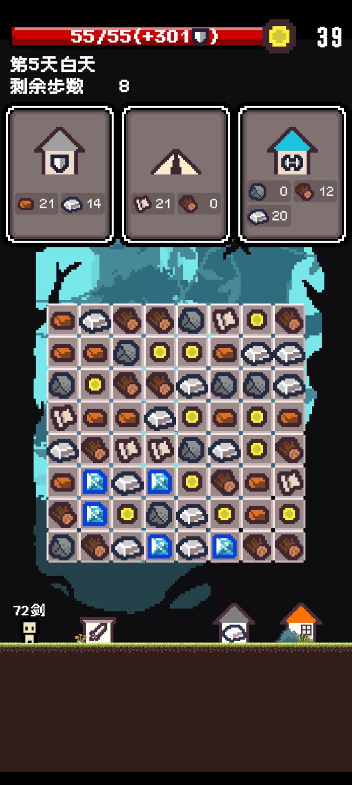 一直加新的东西结果卡死了一步也动不了,爽快感还不如第一天一直消一直爽,爽快感随着日期增多而减少也是可以的,加一个新机制防止卡死,比如说检测到没办法消除的时候就全部清除重新来,而且就没有什么特别能力吗比如说可以一次性把所有金币给吸收之类,加点肉鸽元素可以强化自己的消除能力才好玩