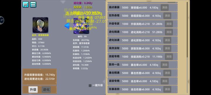 怪120已经没了,等级上限目前还未知,不想挂了,就等每天的广告升级了。