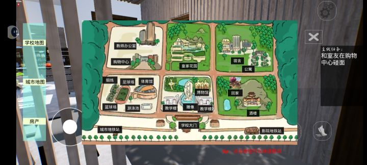 功能很丰富,主要功能都在设置页签内,最大限度减少UI占用主界面,突出中间显示区域。玩法上与很多大学生活题材的游戏很接近,包括手机功能、地图传送、丰富的任务等,只是更加拟真,第一视角下增加了代入感。