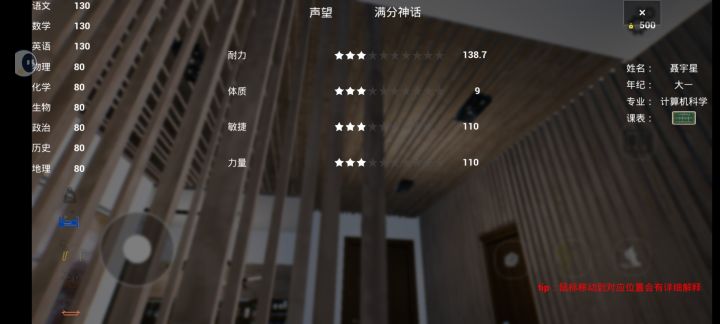 养成内容是主角属性,包括学科成绩和身体四维属性两部分。