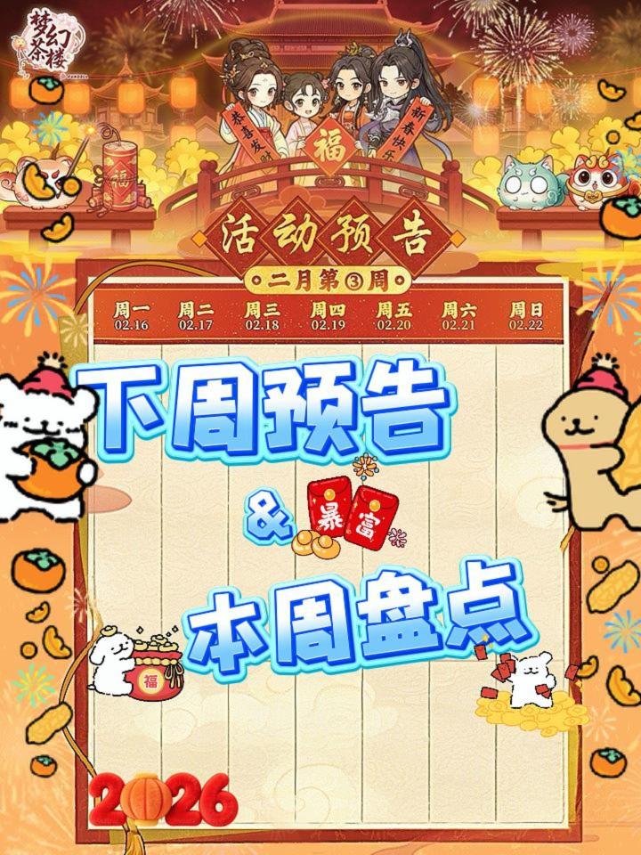 二月第三周活动预告来啦!P5为本周更新盘点如有遗漏,欢迎补充!春节假期快乐!#发现好游戏 #古风游戏 #梦幻消除战 #游戏攻略 #游戏日常