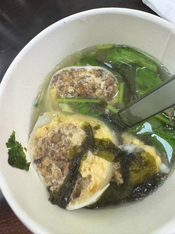 #梦幻假期美食分享 峪浪屿非遗手工美食,一款海鸭蛋里,灌非满满肉馅儿的美食,配上冬菜,浓淡的美食,让人流连忘返!