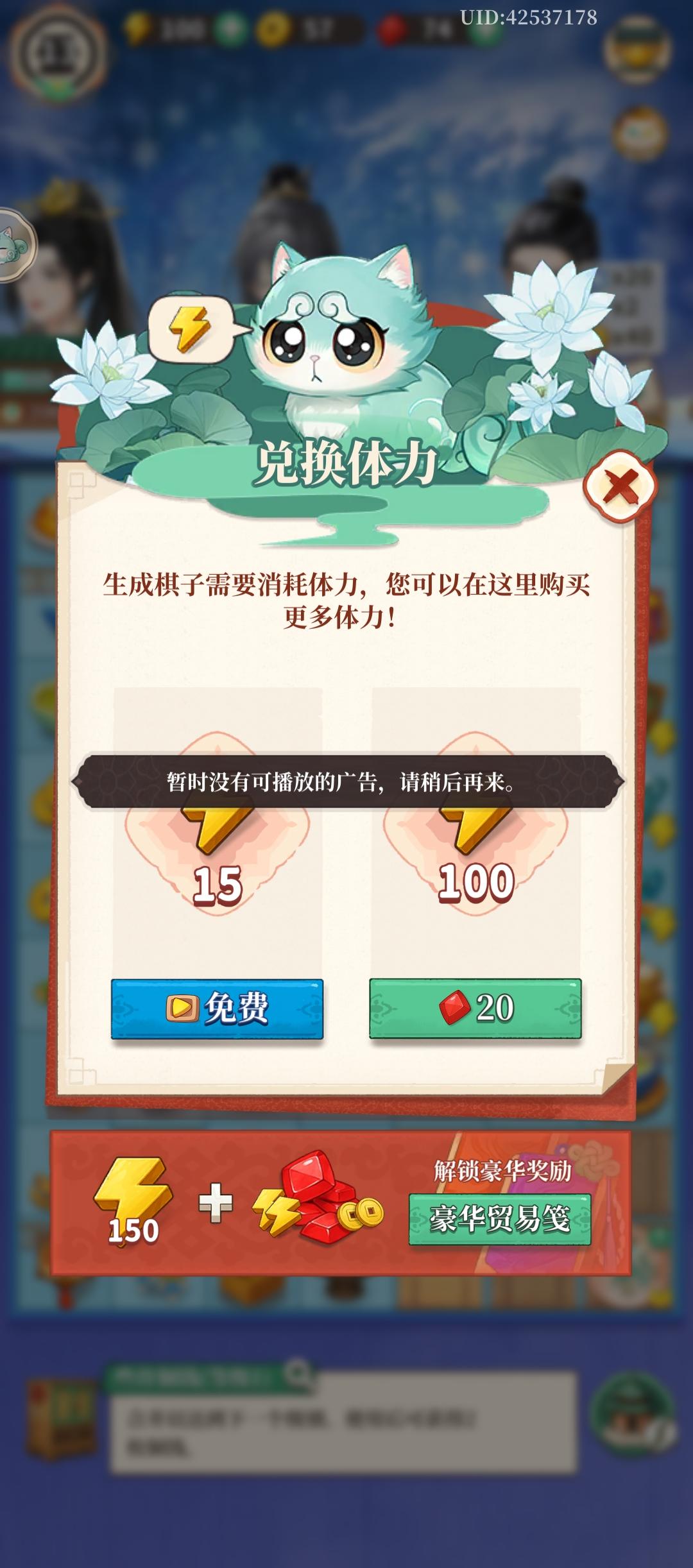 除了第一天刚下有广告能看,这么些天都不能看广告我真的会谢啊。体力也没法拿,东西也拿不到