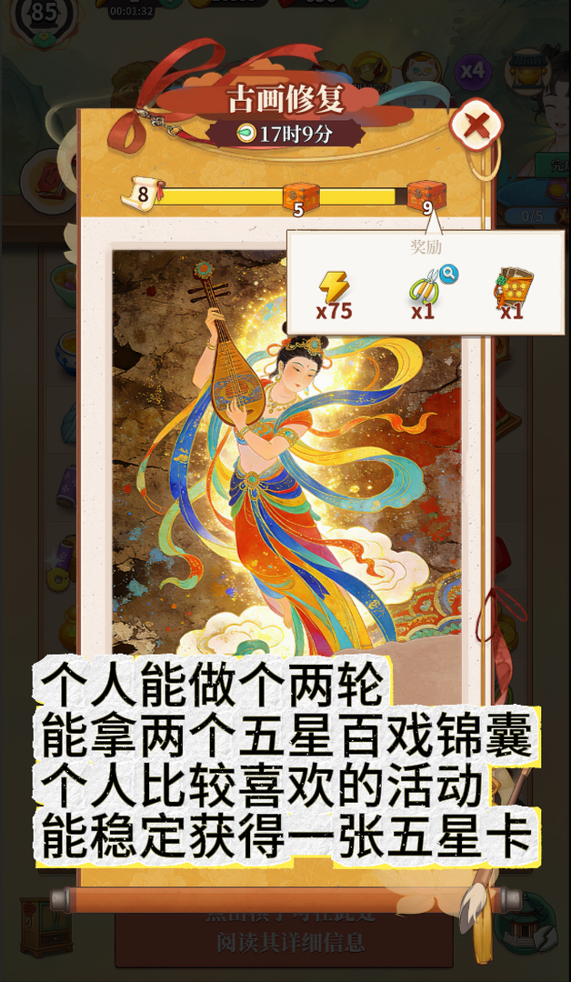 奖励多多!争取拿下!今天一口气古画+连连看+副棋盘没赶上早上的bug慢慢做剩下两个活动吧#发现好游戏 #古风游戏 #唐三彩 #梦幻消除战 #玩梦幻消除战送唐三彩