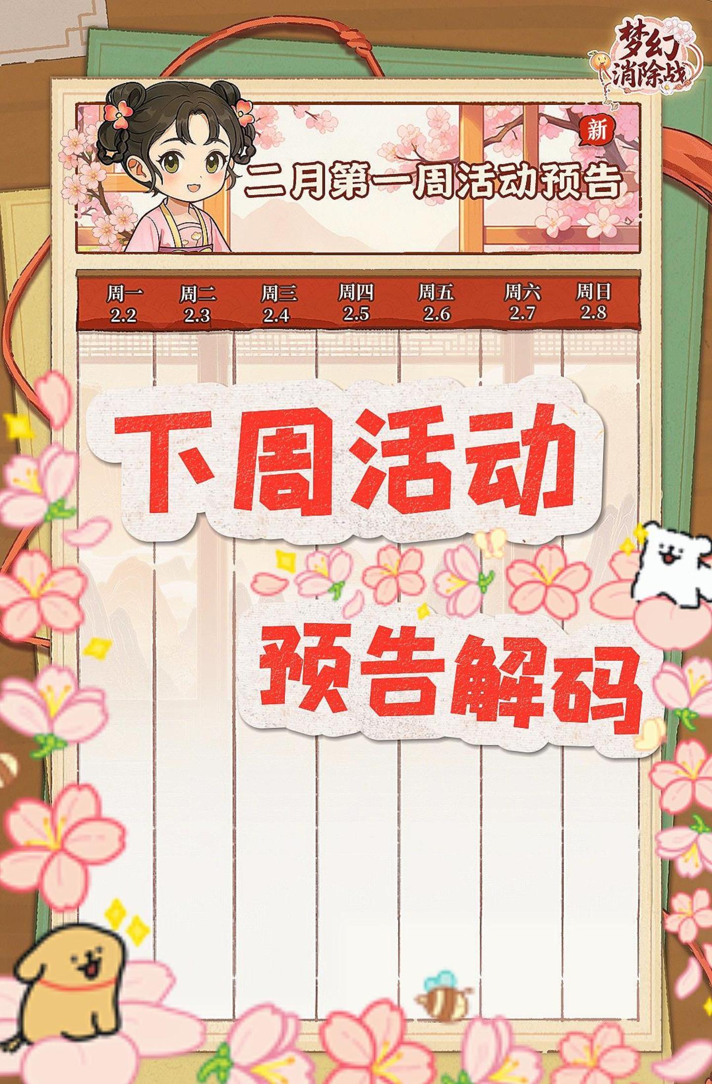下周活动 预告解码(二月第一周)