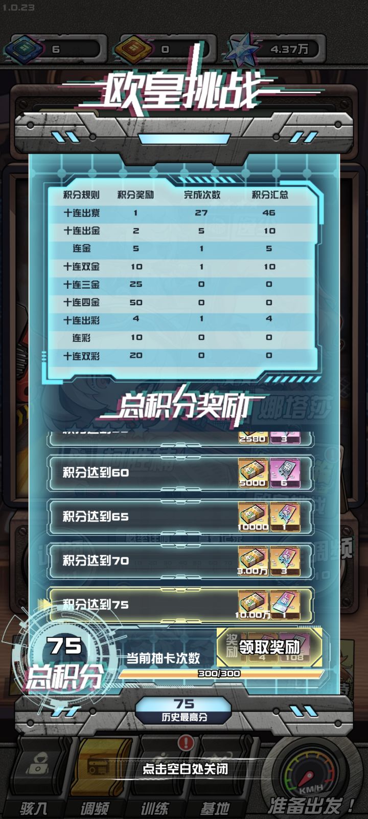 新手进游戏第一步先随便抽抽卡获取一下角色。角色分UR(彩色) SP (金色)SSR(紫色)。后续看看广告都会全角色满命的不用急。楼主比较非酋,2w7抽才入魂了免广卡。实际上角色已经早就全收集满命了。不着急的小伙伴可以等商店里的星核对换是每天都刷新的相当于双倍充值了,超值礼包每一档的最后一个包含的彩色碎片可以在背包里合成彩色角色(也就是抽卡里最稀有的UR)。在抽卡前开启欧皇挑战可以根据300抽获得