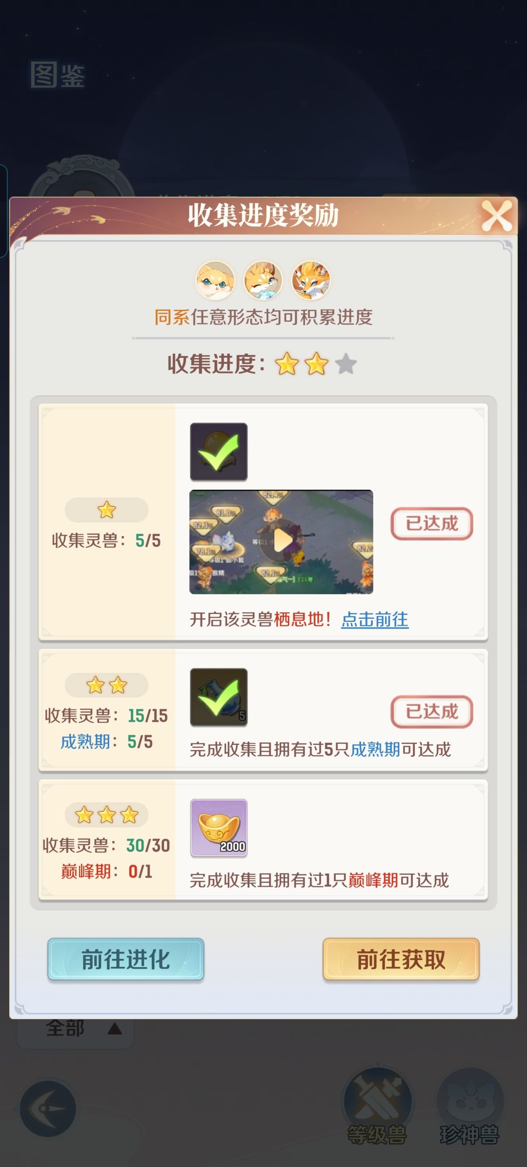 我收集完成了30只,宠物继承到巅峰期,图鉴不生效。