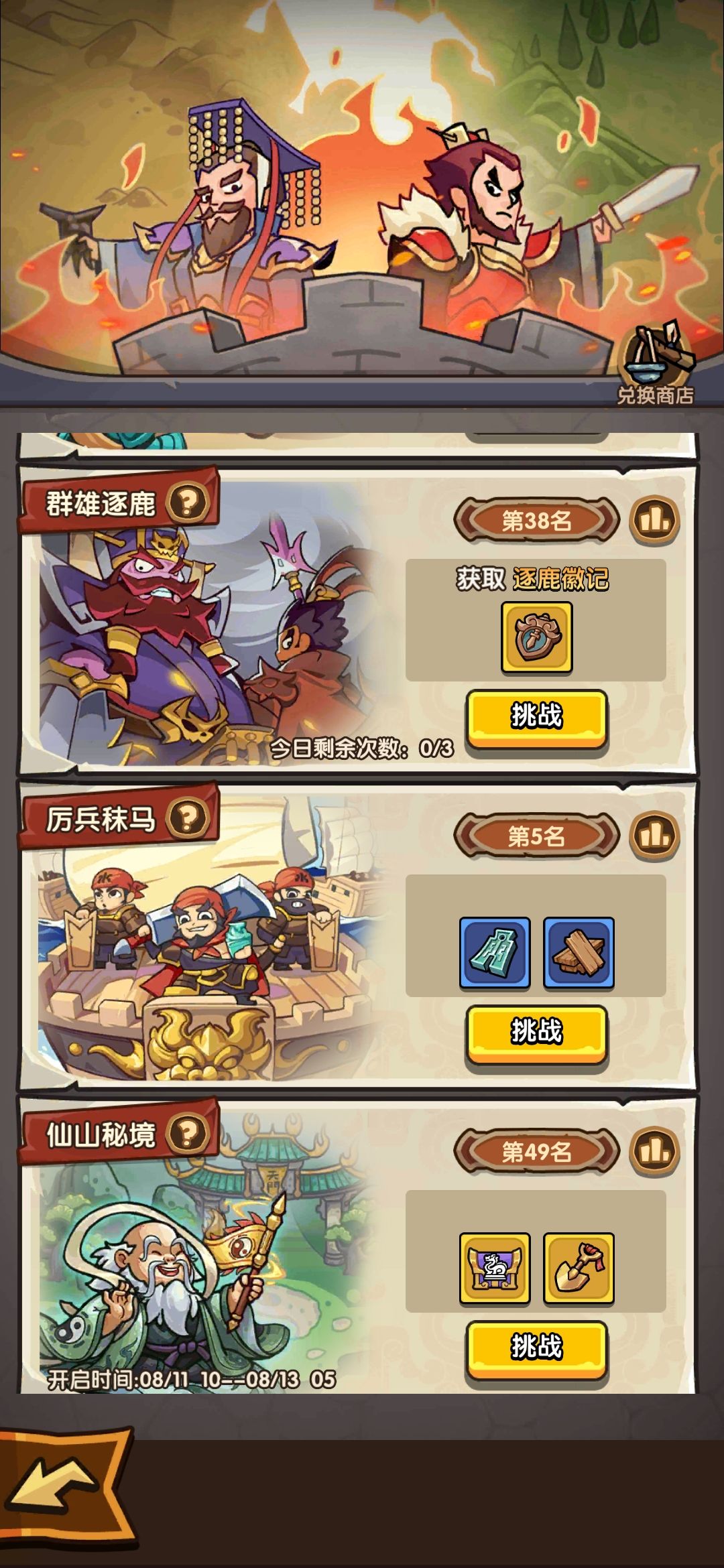 #我是大主公主线关卡攻略 很多新手玩家不懂仙山秘境怎么打才能把分打高,攻略来了。首先配置好你的主c军师跟武将,进图就挑npc打,尽量打靠中间的,这样选择到npc的概率比较多。遇到全部❓的中间有选择获得司南选项的直接拿,没有司南选项的选最后一个三选二属性加成,司南用途是为了关卡通关完可以直接结算成分数❗其他直接无视。遇到商店的用司南买宝物或者加兵种属性的直接结束,一个不买。遇到锤子加血的选择加固就行