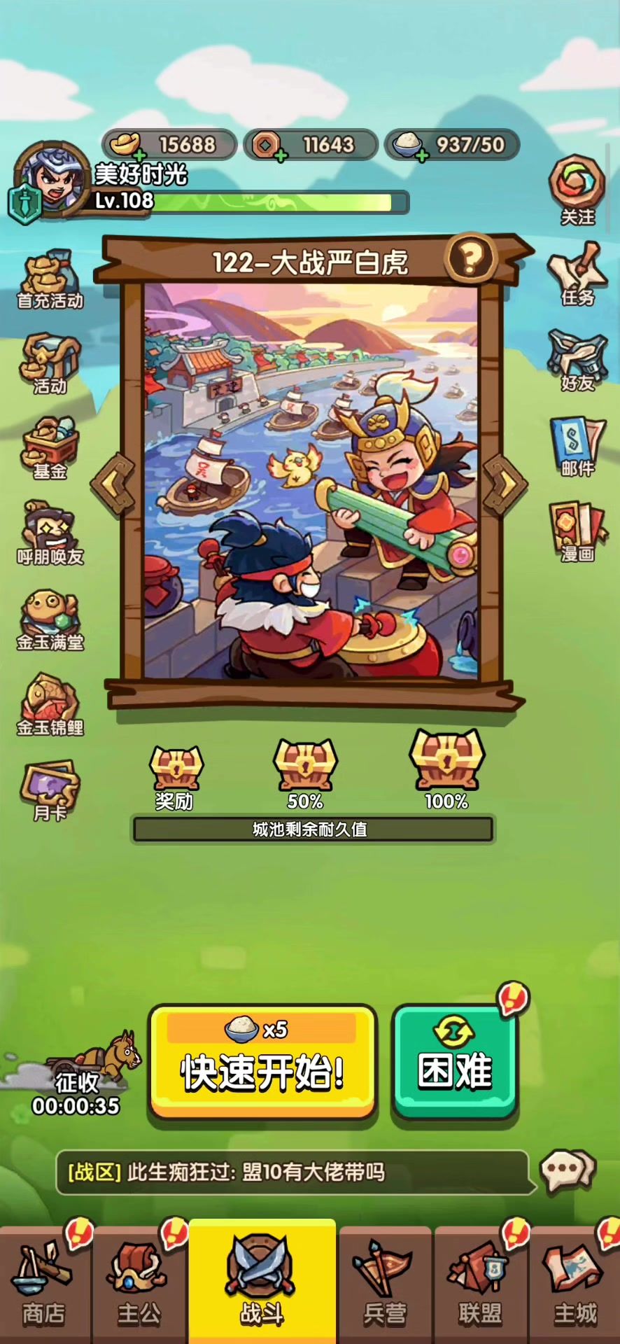 50之前无脑刀盾,50之后基本民转,活动玩好运连连,搞弓冰两军师转职用#我是大主公主线关卡攻略