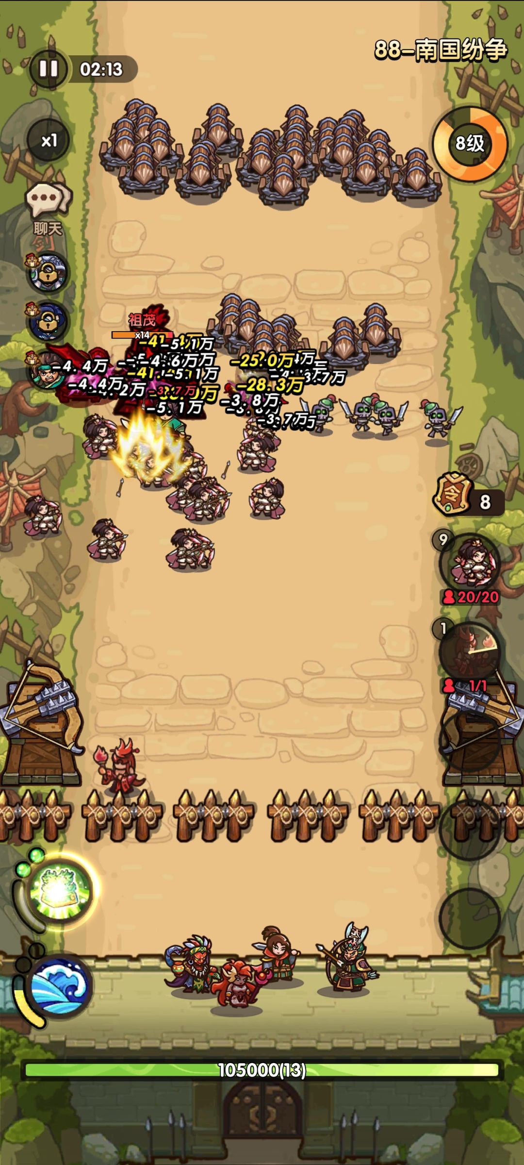 #我是大主公主线关卡攻略 首先开局随机到词条民兵强化60伤害,升一级点出民转冰,前五级要点出民兵强力一击,顺带把人数点上去,精英怪出来之前点出民兵控制,冰法师,最好带个冰峰加一的玉,点冰锥强化和冰峰,冰锥冷冻看情况点,前排的话根据自己的玉来看,我是用盾兵点人数,最好上个弩兵,点个连射就ok了。玉的话最好多带点城墙免疫伤害,战斗力在4700以上,运气好的话能过