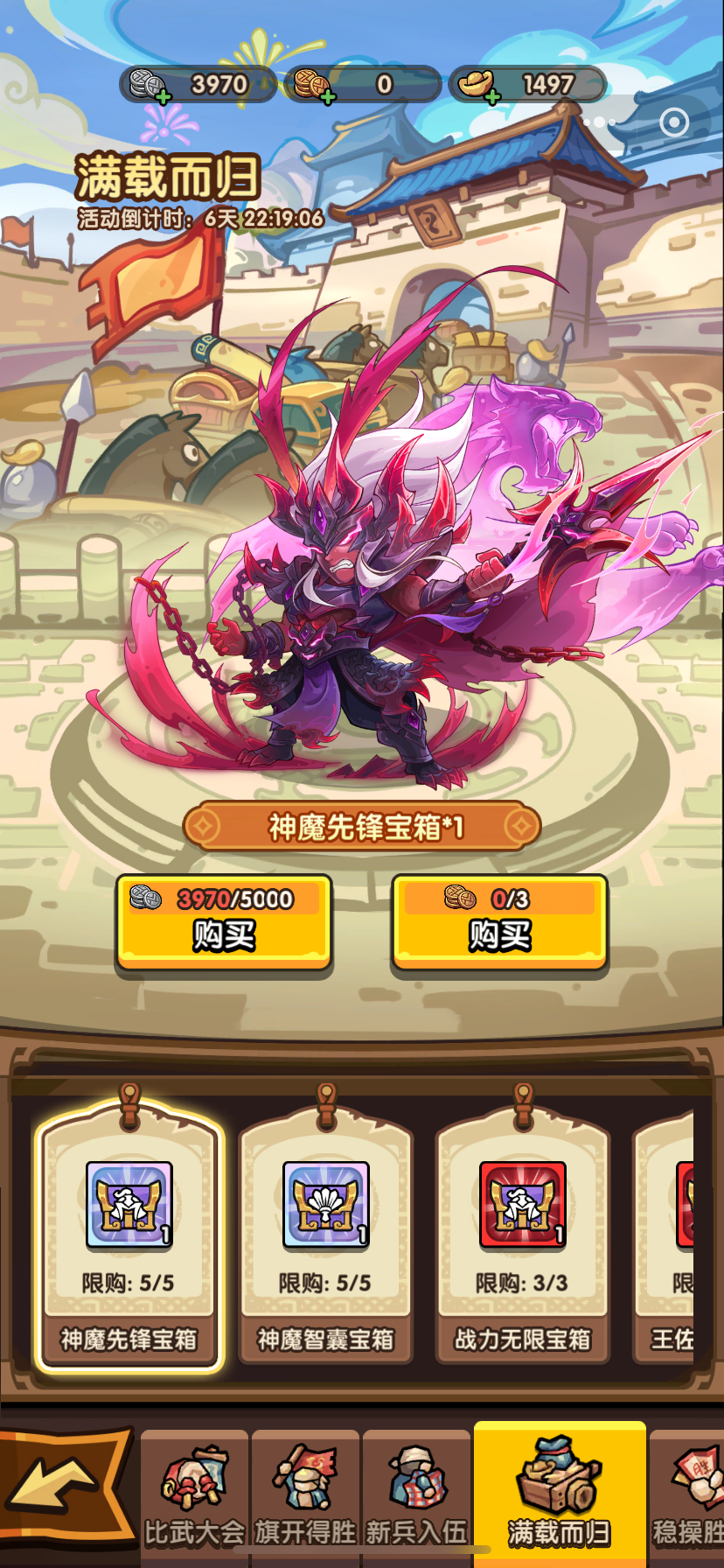 如图,旗子也换完了,两百抽3970银币。就是说出一次财神两天全买,连一个神魔武将的箱子都开不起?