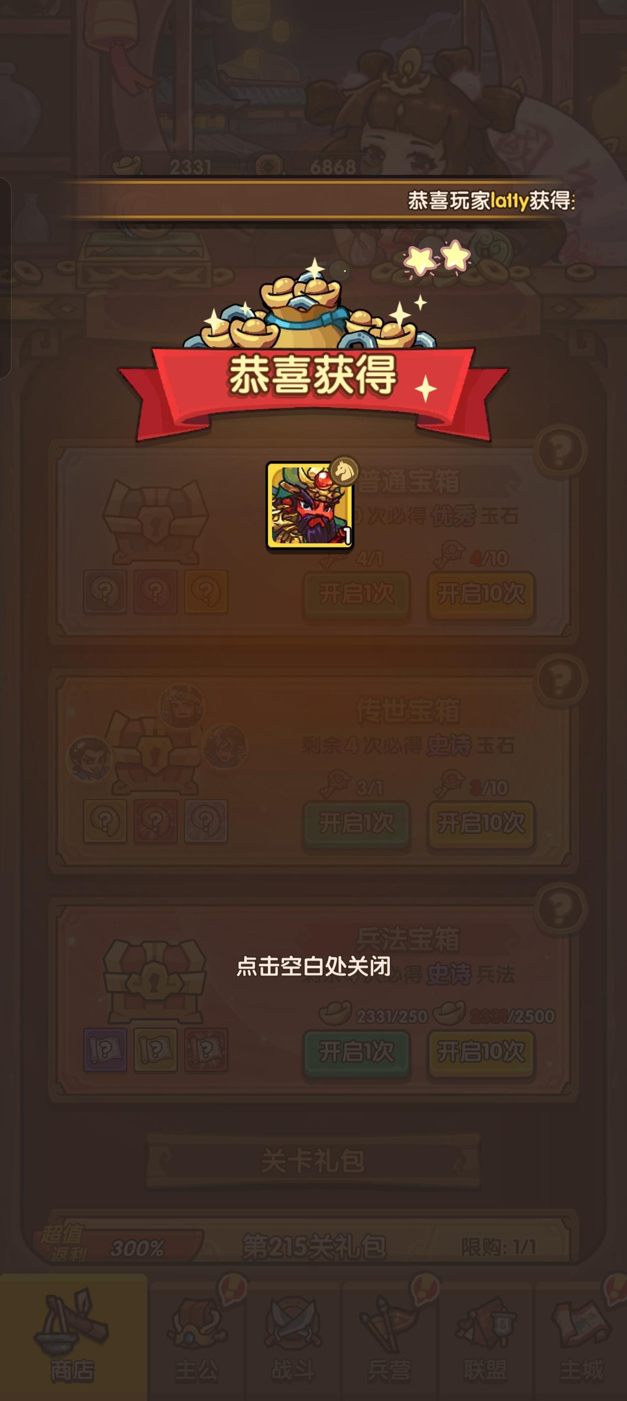 策划能不能出来说下,五个金玉满堂箱子給五个周泰算什么概率,还是我氪多了,让您不爽了?我真的是那百万分之一的幸运儿,七星周泰,关羽甄宓0星