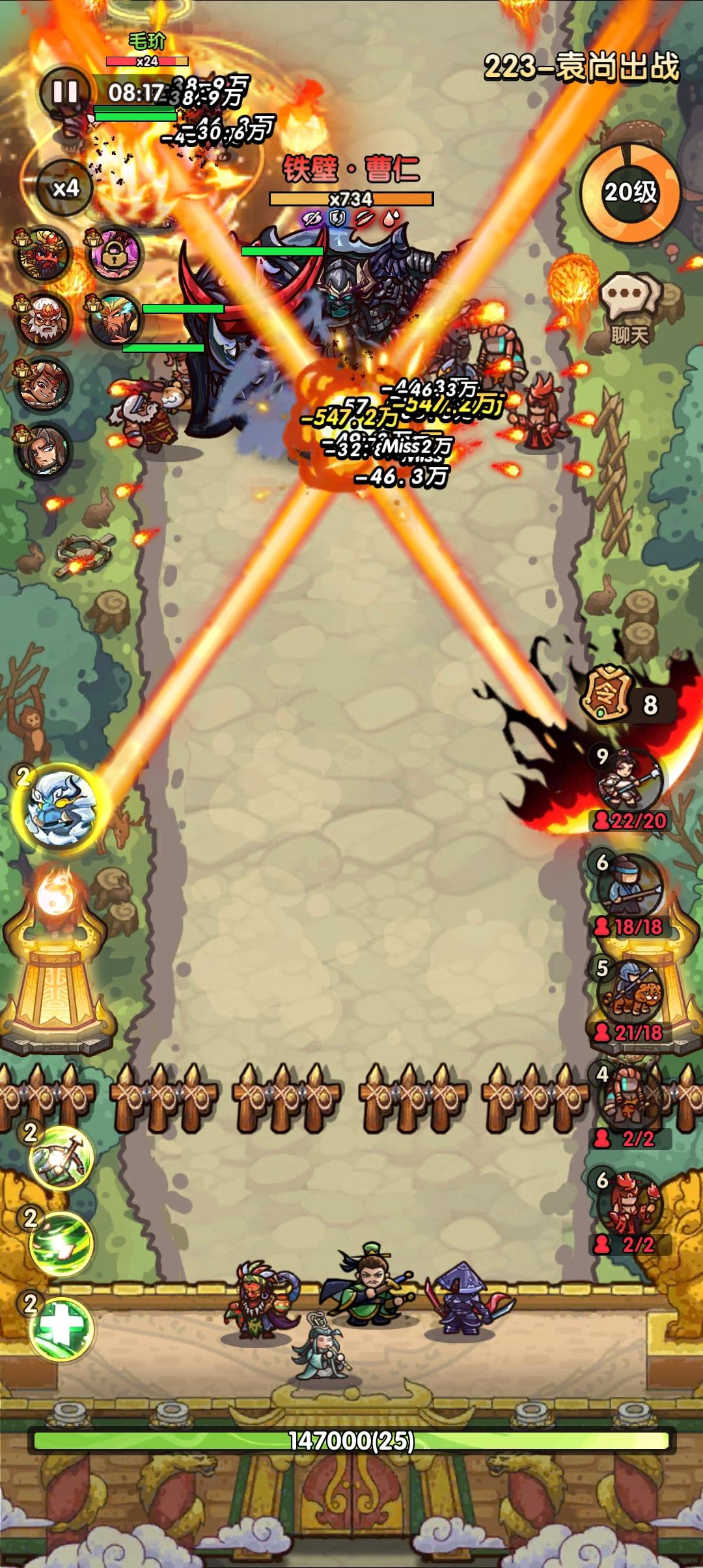 攻击力是够的,五万多的,我看有些4万多的也过了。骑兵营地40级。不过骑兵的将比较弱,二三代都是一级。玉石也只有几个。御兽是满了。试了几次,在骑兵点到15级,御兽八九级的情况下,只能打掉四分之一血。已经叠满出兵了,骑兵一次刷20个,必定暴击完就重新出击,但打这玩意掉血很慢。其他民兵,重骑兵,法师,碰一下就死