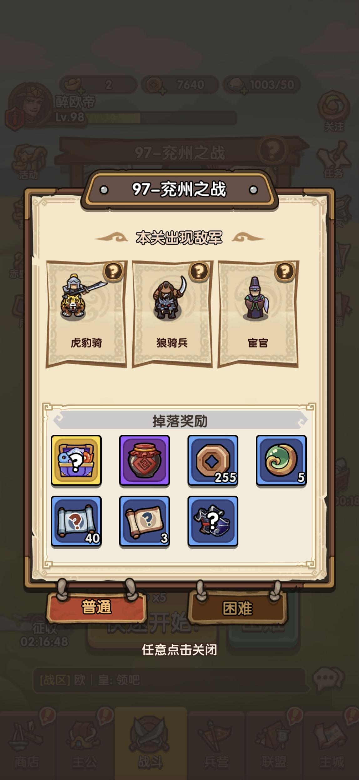 每关的BOSS,目前只更新到120关,因为后面的打不过。再也不用为选择什么控制控BOSS而烦恼,摆脱兵种完全启动后,发现控不住BOSS的囧境,助力通关我的邀请码: 74d645eb,有问题可以找我交流#我是大主公 #我是大主公主线关卡攻略前120关