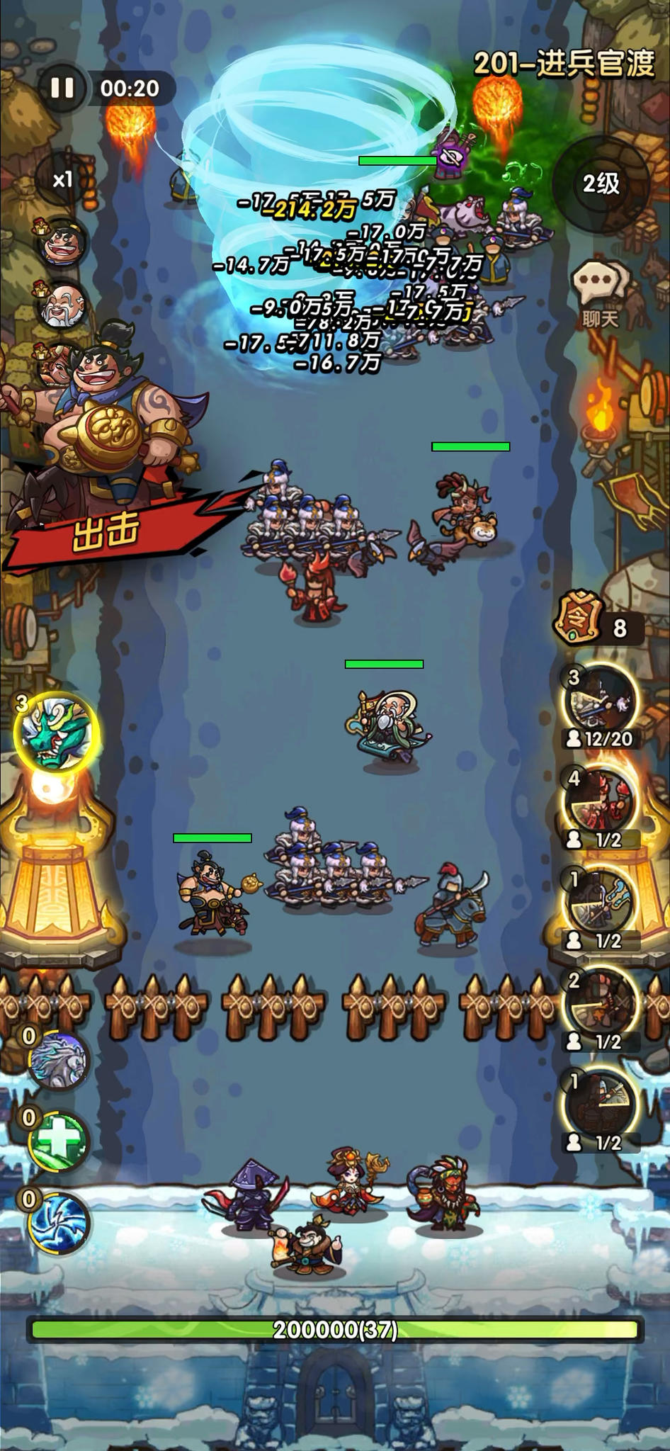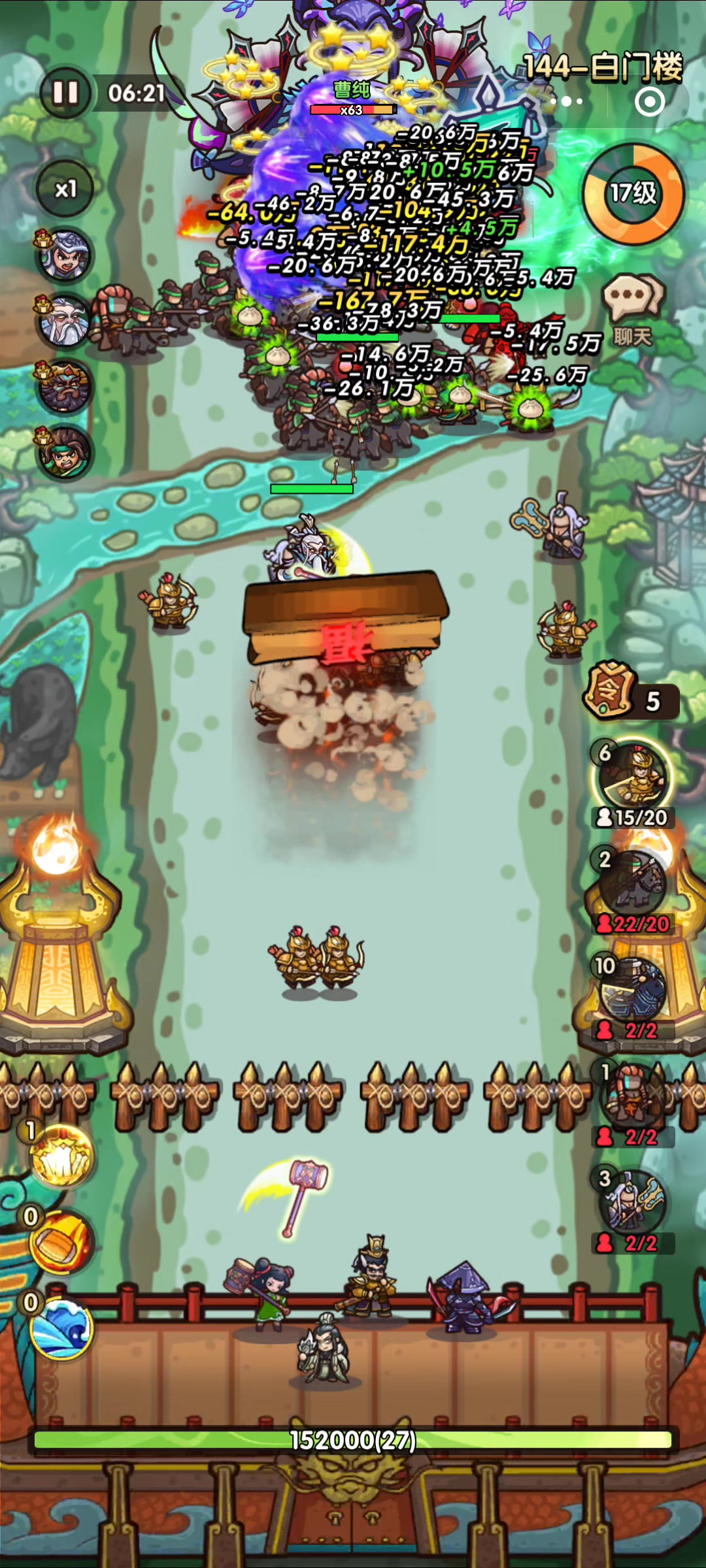 今天第一把,打官渡前把冰换成雷然后直接130,结果在打boss前雷打了40的伤害且boss出来时候已经18级了,没有雷武将。这把民兵连击都没拿到[表情_捂脸哭],又莫名其妙过一关