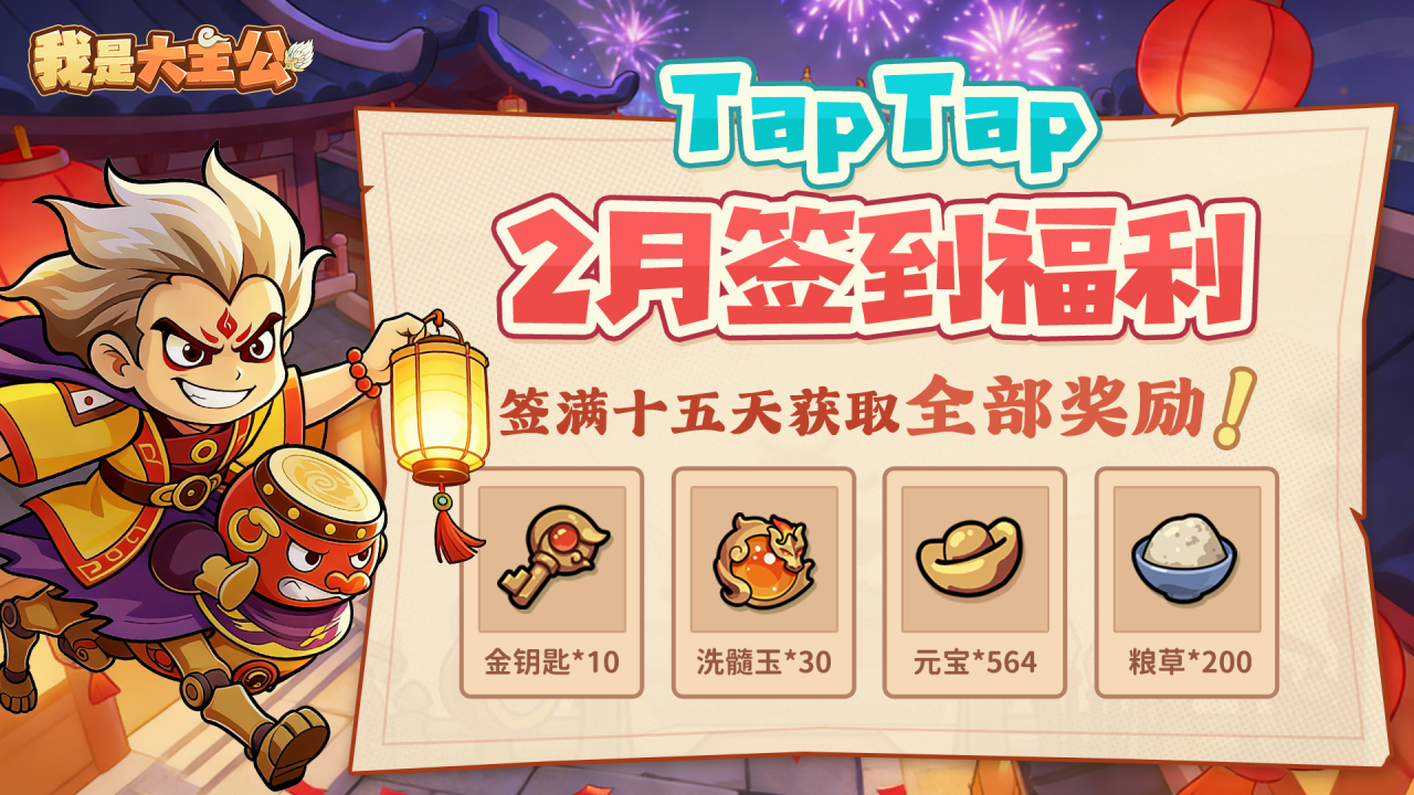 春节的脚步越来越近啦,香香在这里预祝各位主公新春大吉!二月新春专属签到好礼,已为主公们准备好啦~前往TapTap完成签到即可领取奖励,本月累计可获得——金钥匙*10,粮草*200,洗髓玉*30,元宝*564签到福利日历:📅 第1天:粮草*50📅 第2天:金钥匙*2📅 第3天:元宝*188📅 第4天:洗髓玉*6📅 第5天:粮草*50📅 第6天:元宝*188📅 第7天:洗髓