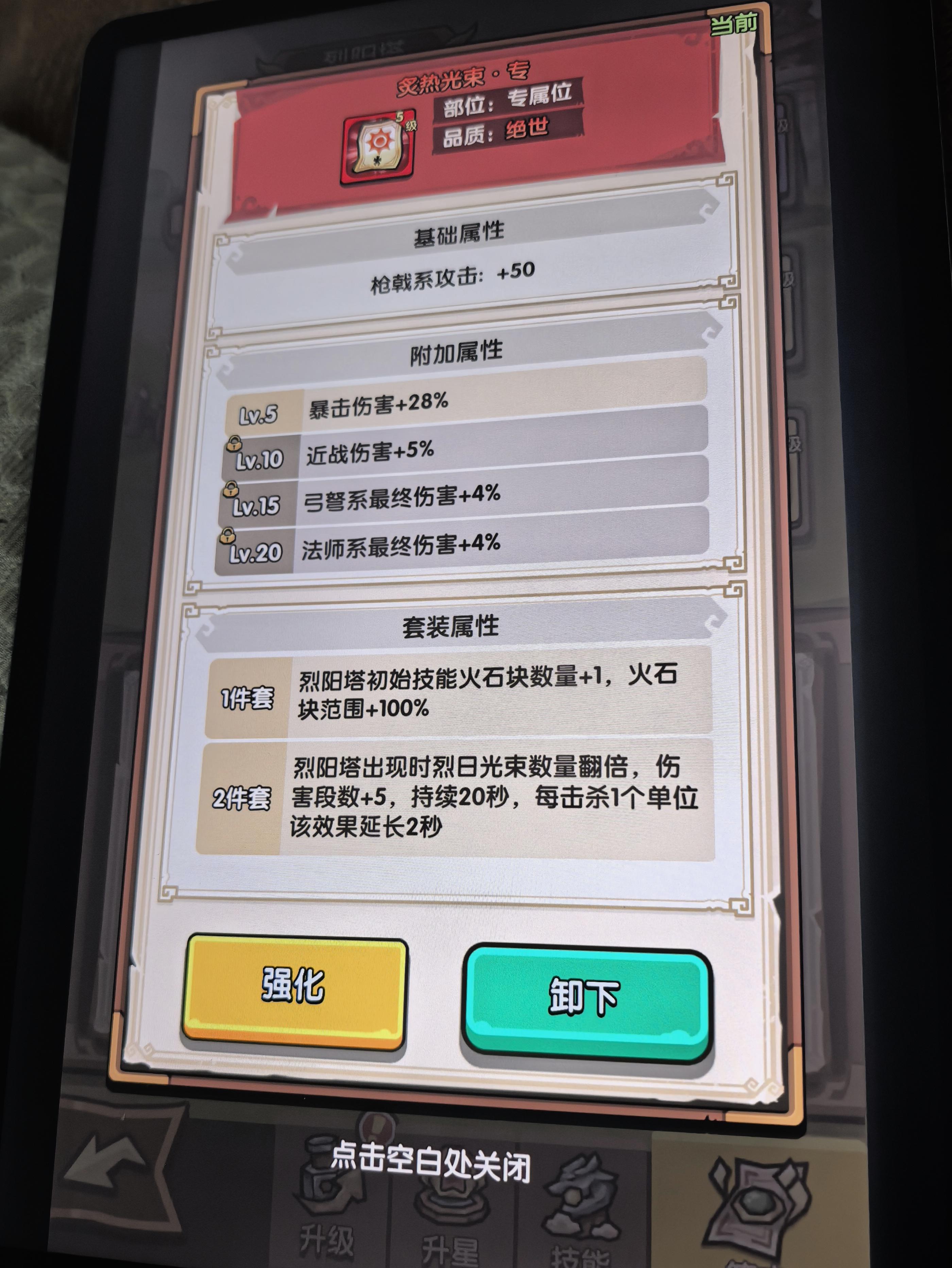 难到我的塔只有一星的缘故?可一星就有烈阳光束了。为什么专属符文的2件套数量没翻倍