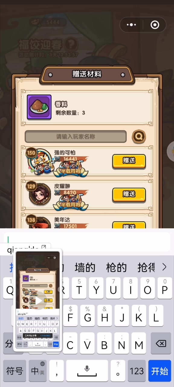 早上想给盟友送材料,搜了名字和ID,都显示搜不到玩家,我就纳闷了。 在视频里试了一下,发现就连列表里有的人都搜不到,真的是垃圾游戏。#我是大主公 #垃圾游戏推荐 #垃圾游戏