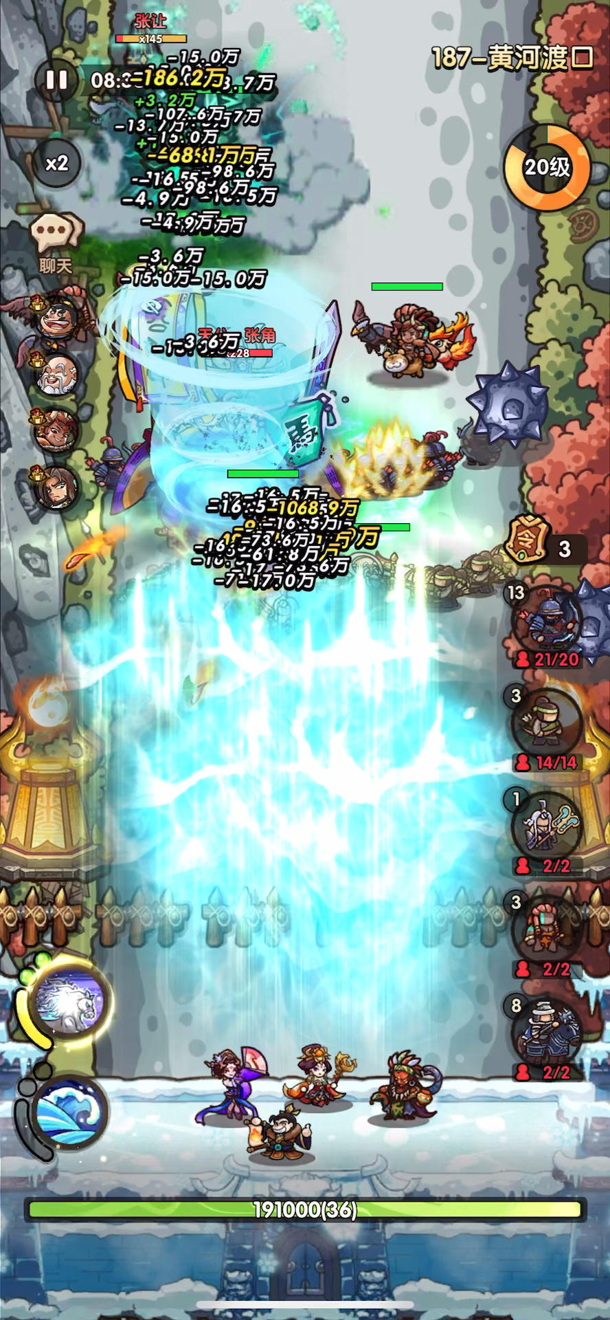 这一关小怪事锤子和虎豹骑,用弓连射触发传送来处理虎豹骑,风触发触发秒杀在最上面压怪打,开局有重骑选免疫最好,由于没带火,护腕带了分身+1,20眩晕