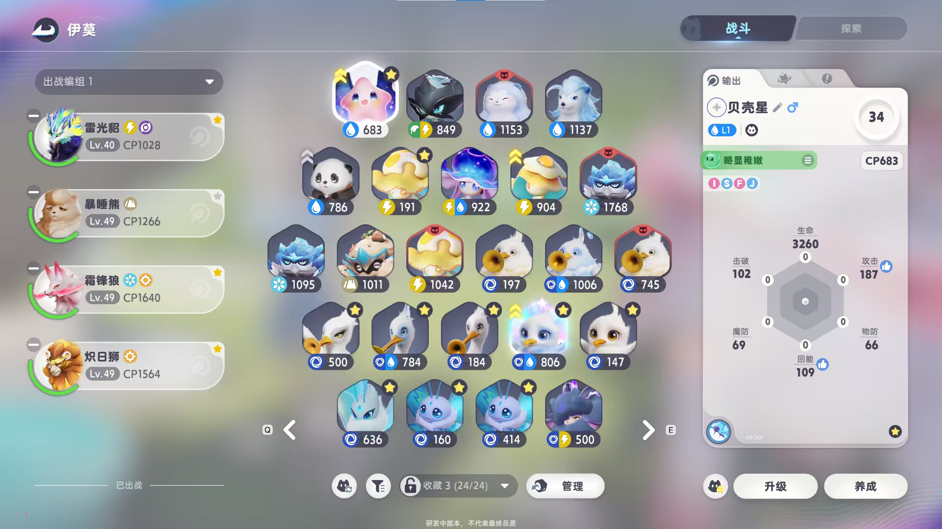 三天23个钟头测评,1.宠物少,一个宠物至少有两种不同形态,不同地形不同形态算优点,但对于一个抓宠游戏来说,先宠物数量,在不同形态,七个不同形态的飘飘花除了放在背包里没啥用,分支进化也是优点2取消强绑定配对,我看的介绍莲冠龙那技能只能配对草系了,增益差点数值都行,但别强绑定,玩家肯定会为了用自己喜欢的配对,3战斗机制,宠物类型分别有输出,回复,击破,回能,玩到现在至今不知道回能的用处,大多数