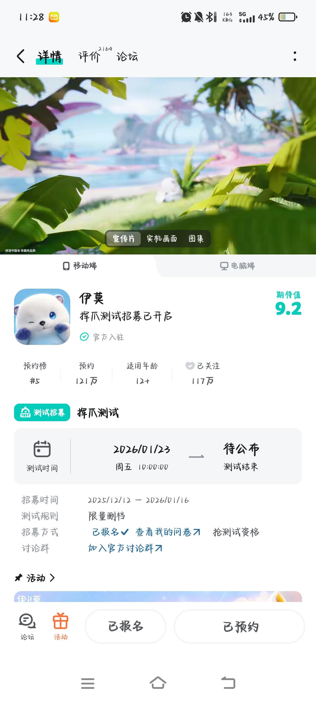 报——挥爪测试定档啦!——2026年1月23日,冒险启程!这一次,我们也带来了新伊莫、新玩法、新体验!一步一个爪印,伊莫努力前进!⏰今晚19:00锁定伊莫【挥爪测试】前瞻特别节目,为你解锁精彩无限~挥爪测试报名将于1月16日晚23:59截止,还未报名的冒险家抓紧填写问卷哦官网预约《伊莫》,公测上线即可获得专属奖励“羞羞獭神秘蛋”~冒险家,我们艾德尔大陆见!#伊莫 #aniimo #伊莫