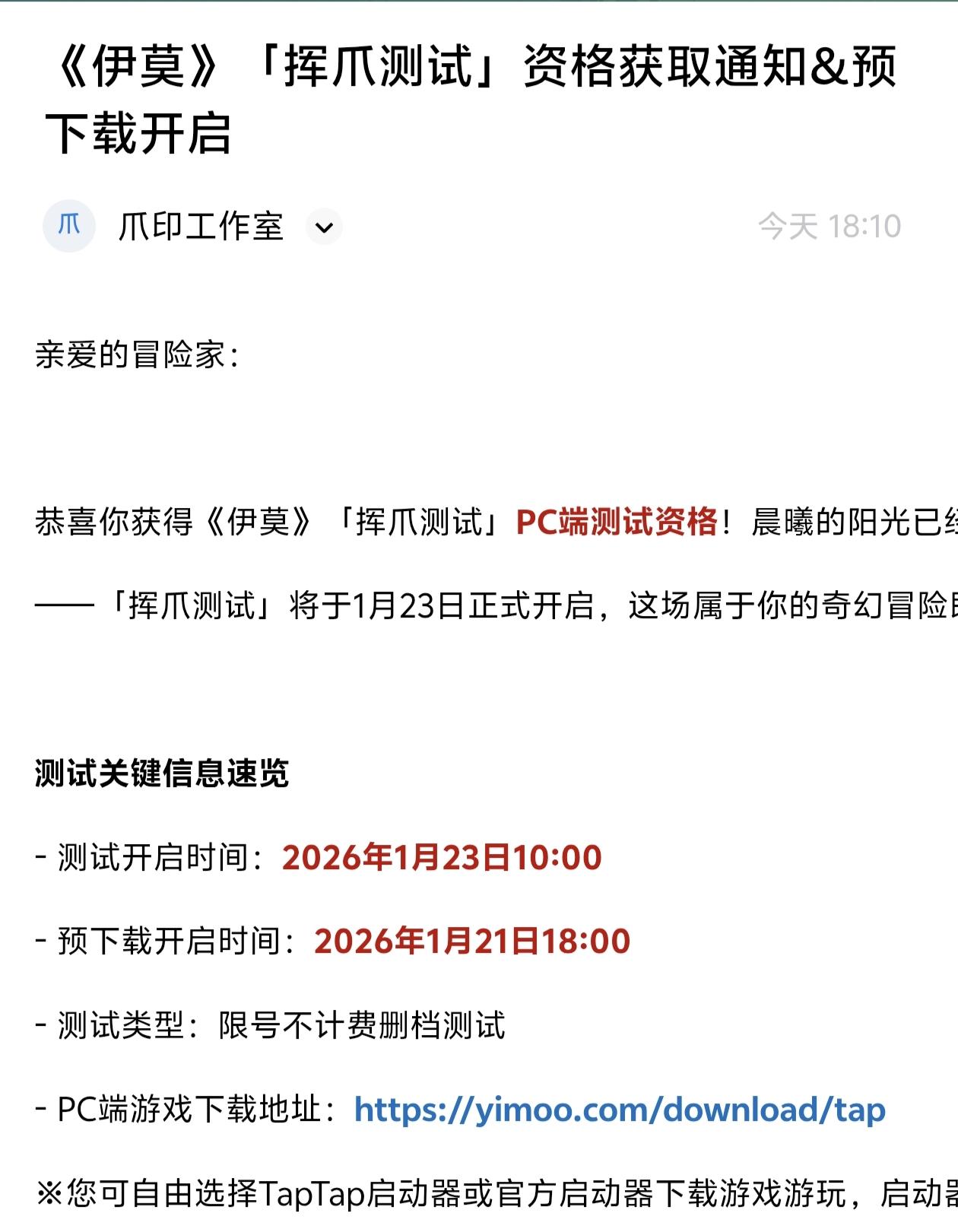 来了来了,真的来了!挥爪测试要开门啦!如何确认是否获得测试资格?怎样下载包体?伊莫爪把手来教៷>ᴗ<៷详细指引请看图片内容,1月23日我们一二三挥爪开测!伊莫最大的心愿就是和你一起冒险!挥爪测试即将开启,预约《伊莫》,公测上线即可获得专属奖励“羞羞獭神秘蛋”~冒险家,我们艾德尔大陆见!#伊莫 #伊莫挥爪测试 #aniimo #有伊莫不emo