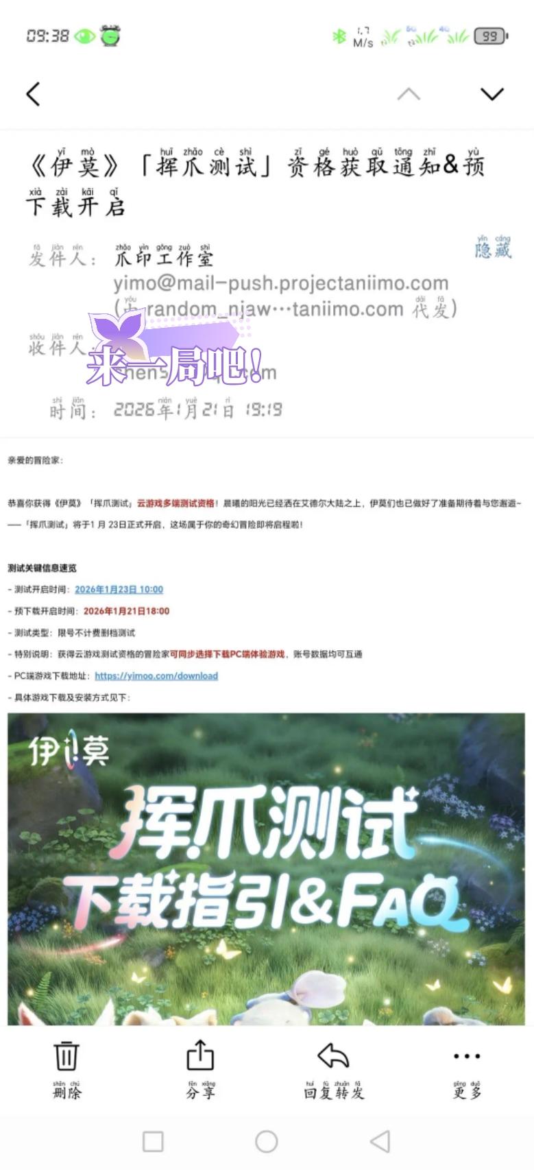 亲爱的冒险家:非常非常的抱歉,原定于今日上午 10 点(GMT+8)开启的「挥爪测试」,因在开服前的压力测试中出现了偶发的主线流程阻塞,不得不延期开服的时间。我们深知大家想要即刻踏入《伊莫》的心情,目前技术团队正在全力进行修复,希望可以尽快与大家相聚在伊莫的世界!为弥补此次失误,在服务器正式开启后,所有玩家均可在游戏邮箱中领取延迟补偿:「辉石」*1000「冠军立方」*2「遥控大白球」*5