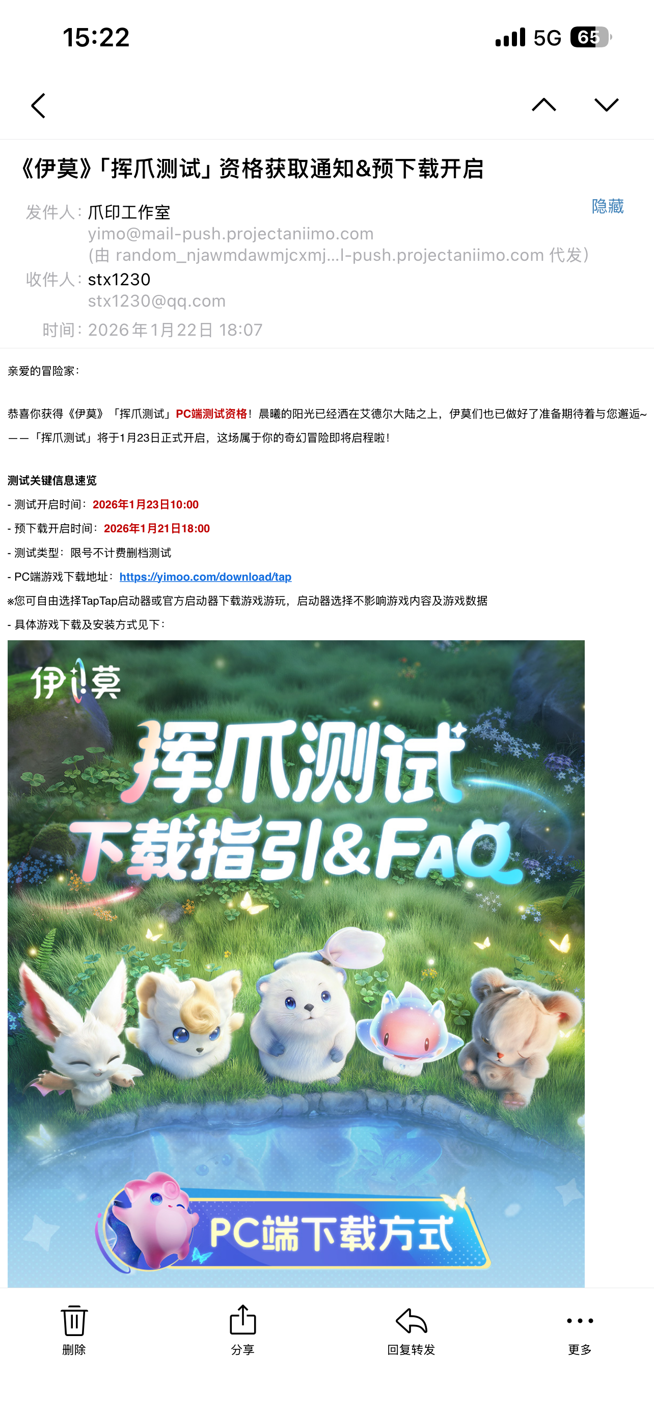 亲爱的冒险家:非常非常的抱歉,原定于今日上午 10 点(GMT+8)开启的「挥爪测试」,因在开服前的压力测试中出现了偶发的主线流程阻塞,不得不延期开服的时间。我们深知大家想要即刻踏入《伊莫》的心情,目前技术团队正在全力进行修复,希望可以尽快与大家相聚在伊莫的世界!为弥补此次失误,在服务器正式开启后,所有玩家均可在游戏邮箱中领取延迟补偿:「辉石」*1000「冠军立方」*2「遥控大白球」*5