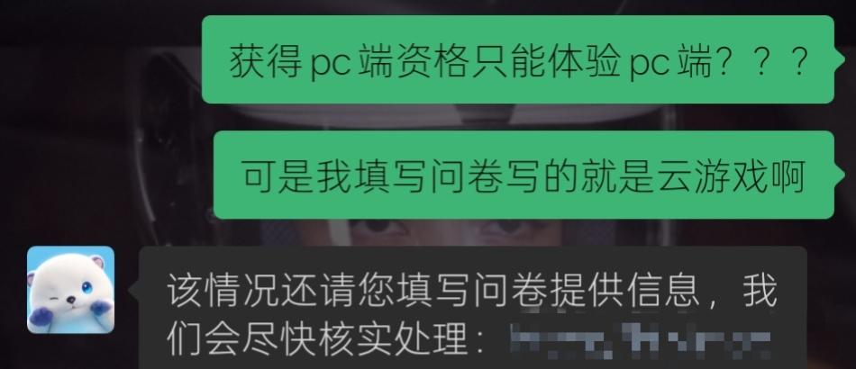 省流版应该是收到ios/云游戏资格→pc端✅收到pc端→ios/云游戏❎但目前好像很多玩家收到的测试资格 都和填问卷时的不匹配(包括我 云游给我发了pc) 这个也问了一下客服 好像目前官方也收到了很多相关反馈 客服给发了链接进行二次核实 如果有相同情况的朋友可以试试联系客服