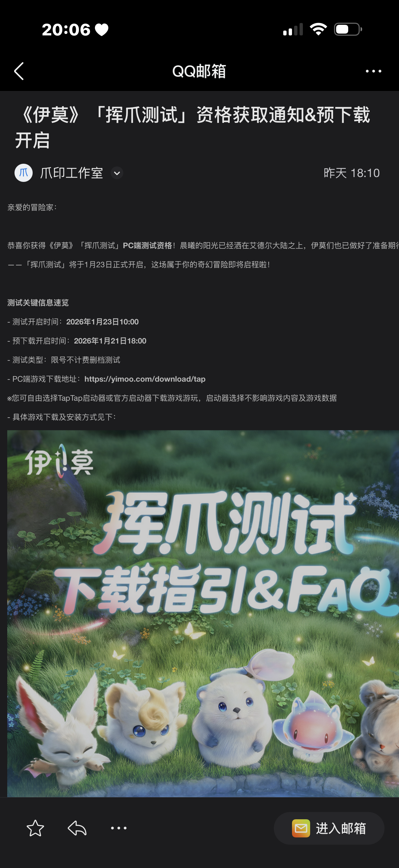 来了来了,真的来了!挥爪测试要开门啦!如何确认是否获得测试资格?怎样下载包体?伊莫爪把手来教៷>ᴗ<៷详细指引请看图片内容,1月23日我们一二三挥爪开测!伊莫最大的心愿就是和你一起冒险!挥爪测试即将开启,预约《伊莫》,公测上线即可获得专属奖励“羞羞獭神秘蛋”~冒险家,我们艾德尔大陆见!#伊莫 #伊莫挥爪测试 #aniimo #有伊莫不emo