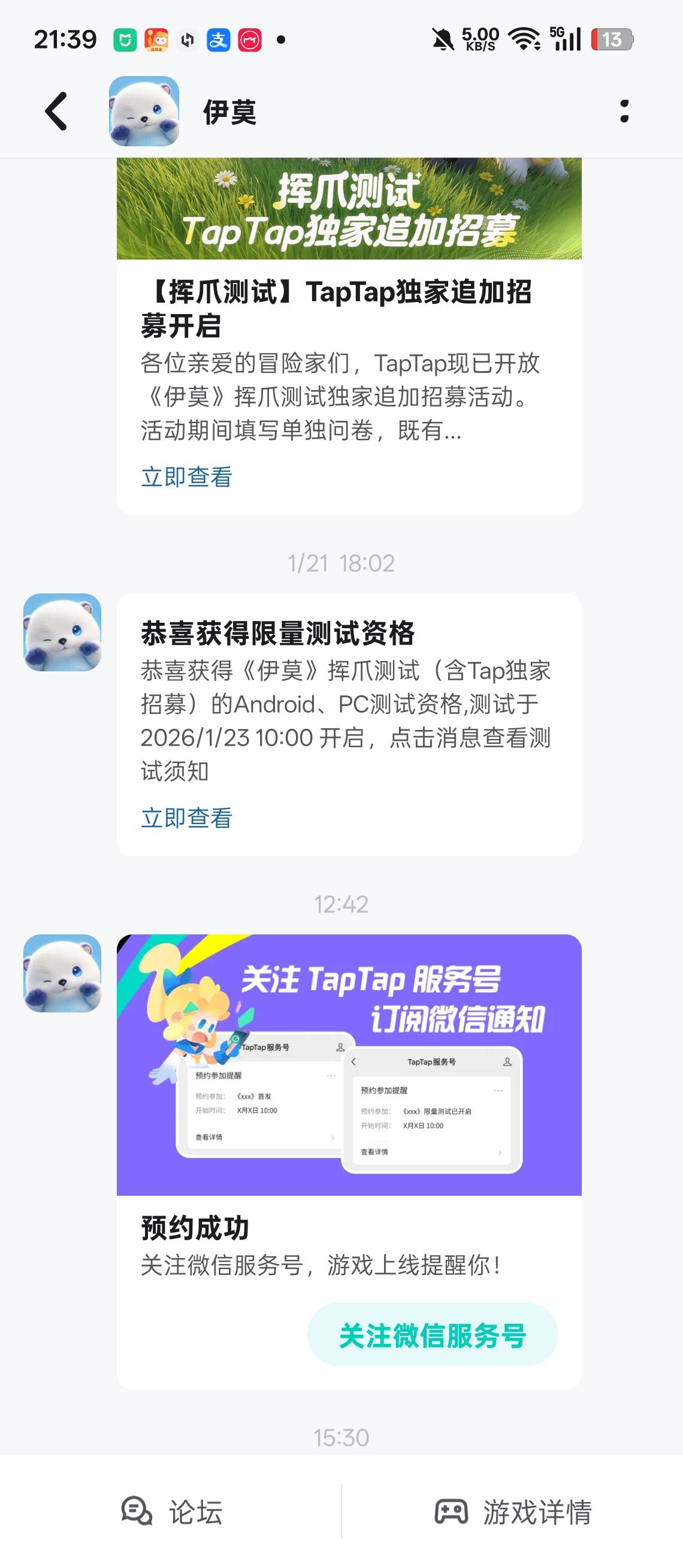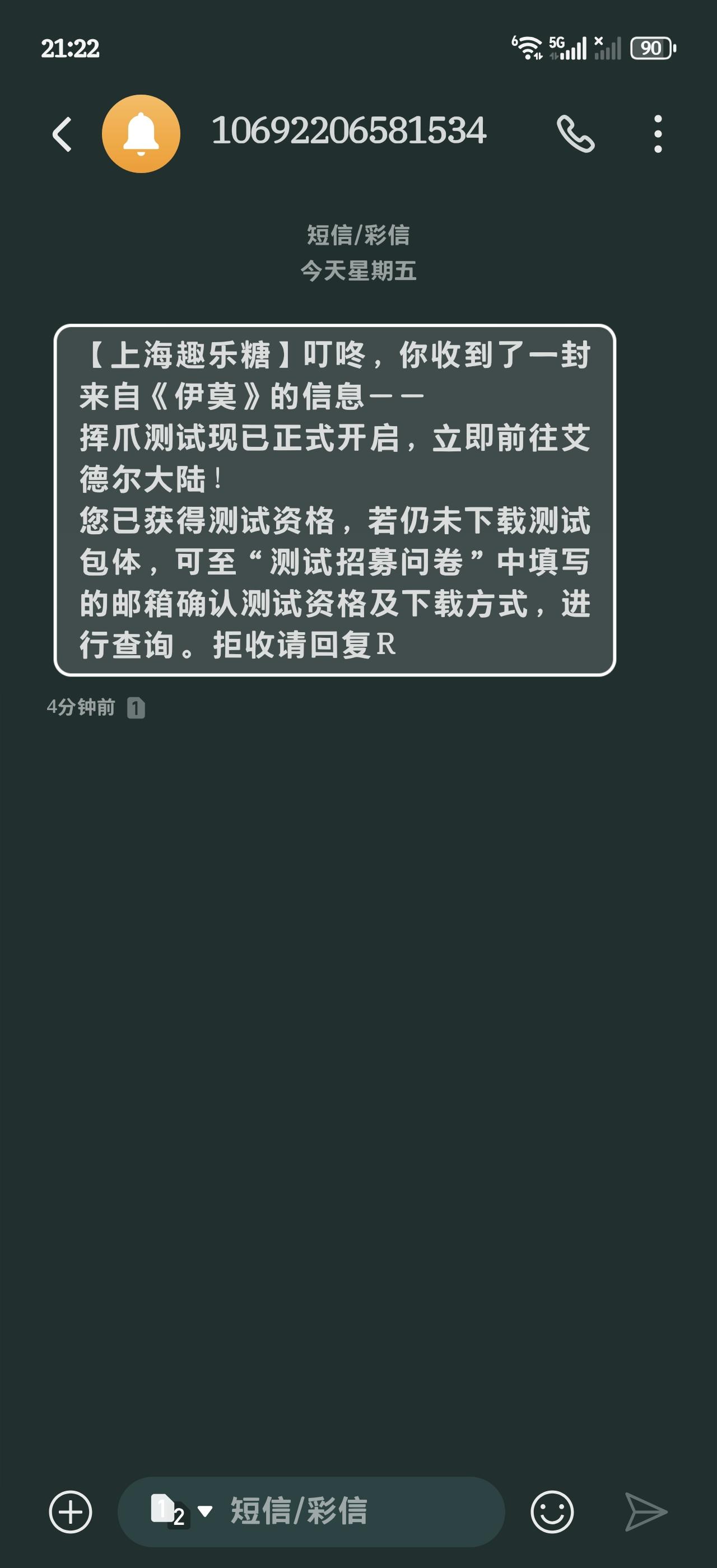 早上我就看别人都玩上了,我以为我没缘分了,结果刚刚睡之前收到个短信还是手机端的资格