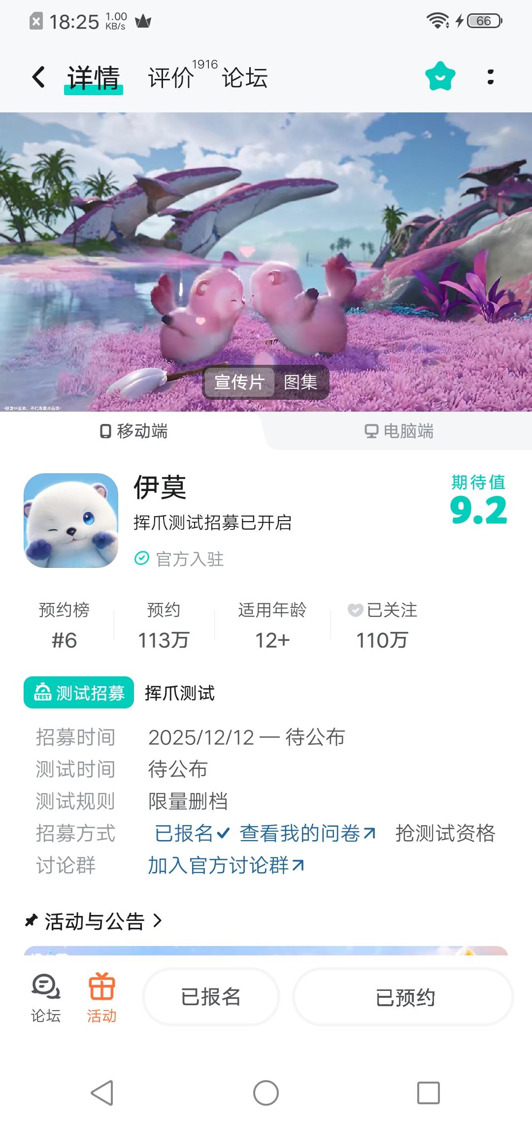 🎉冒险家们久等啦,《伊莫》版号今日正式获批,感谢大家的支持,让我们携手期待这段奇幻冒险旅程的开始吧૮₍ ˃̶ ꇴ ˂̶ ₎ა 📃挥爪测试正在招募中,点击测试预约,填写问卷即有机会获得测试资格。预约还可获得公测上线专属奖励“羞羞獭神秘蛋”~冒险家,我们艾德尔大陆见!#伊莫 #aniimo #伊莫挥爪测试 #有伊莫不emo