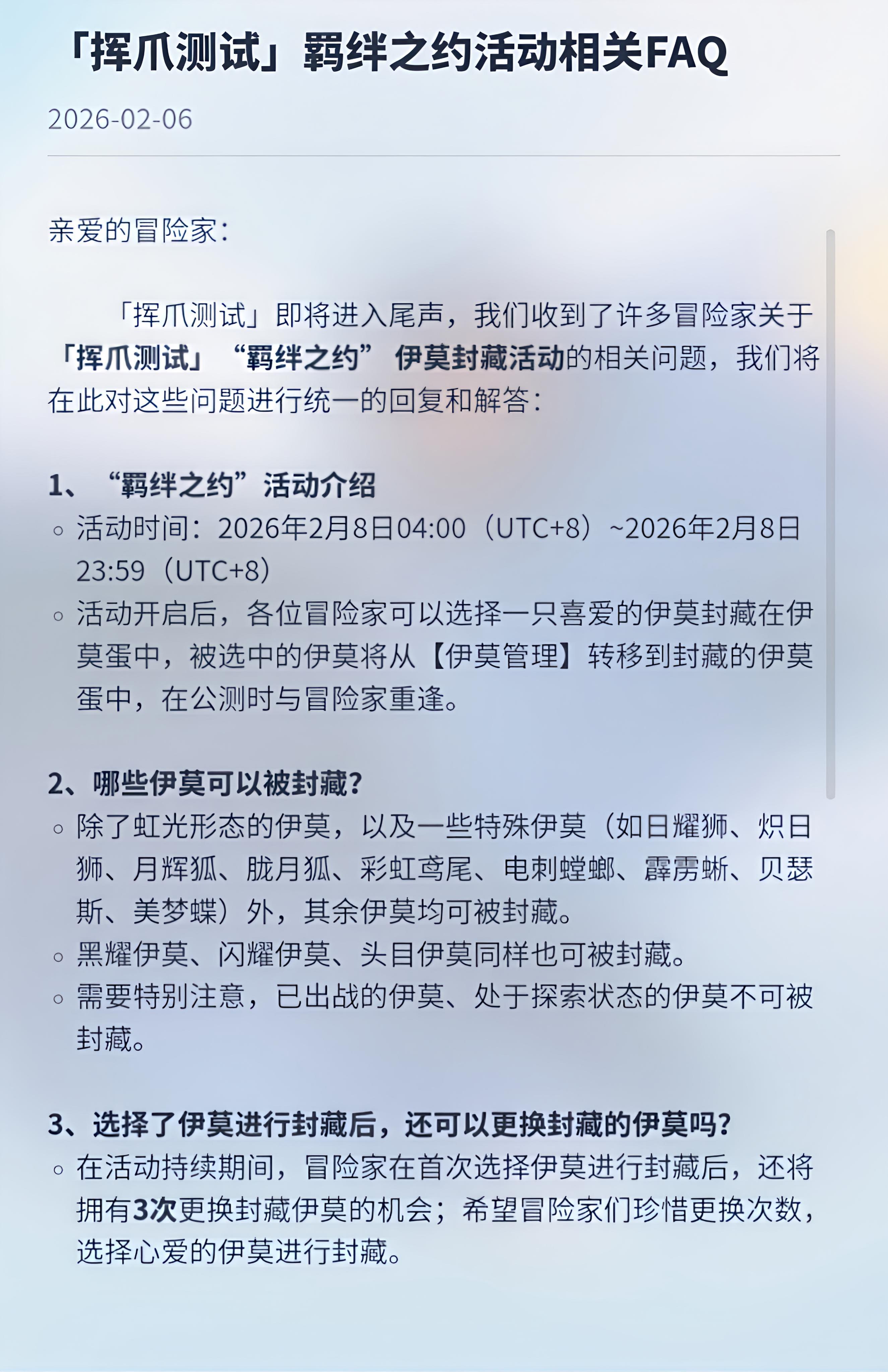 关于封存伊莫,官方详解!!!