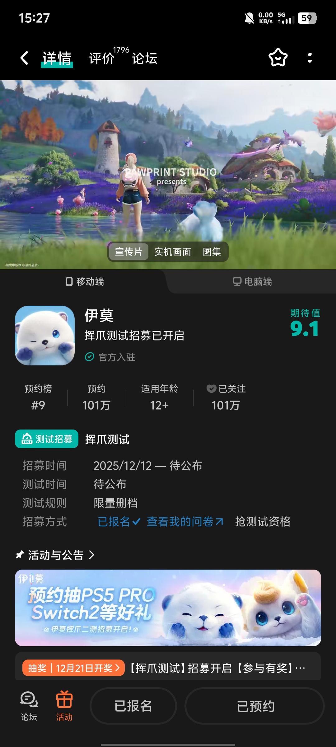 报——挥爪测试定档啦!——2026年1月23日,冒险启程!这一次,我们也带来了新伊莫、新玩法、新体验!一步一个爪印,伊莫努力前进!⏰今晚19:00锁定伊莫【挥爪测试】前瞻特别节目,为你解锁精彩无限~挥爪测试报名将于1月16日晚23:59截止,还未报名的冒险家抓紧填写问卷哦官网预约《伊莫》,公测上线即可获得专属奖励“羞羞獭神秘蛋”~冒险家,我们艾德尔大陆见!#伊莫 #aniimo #伊莫