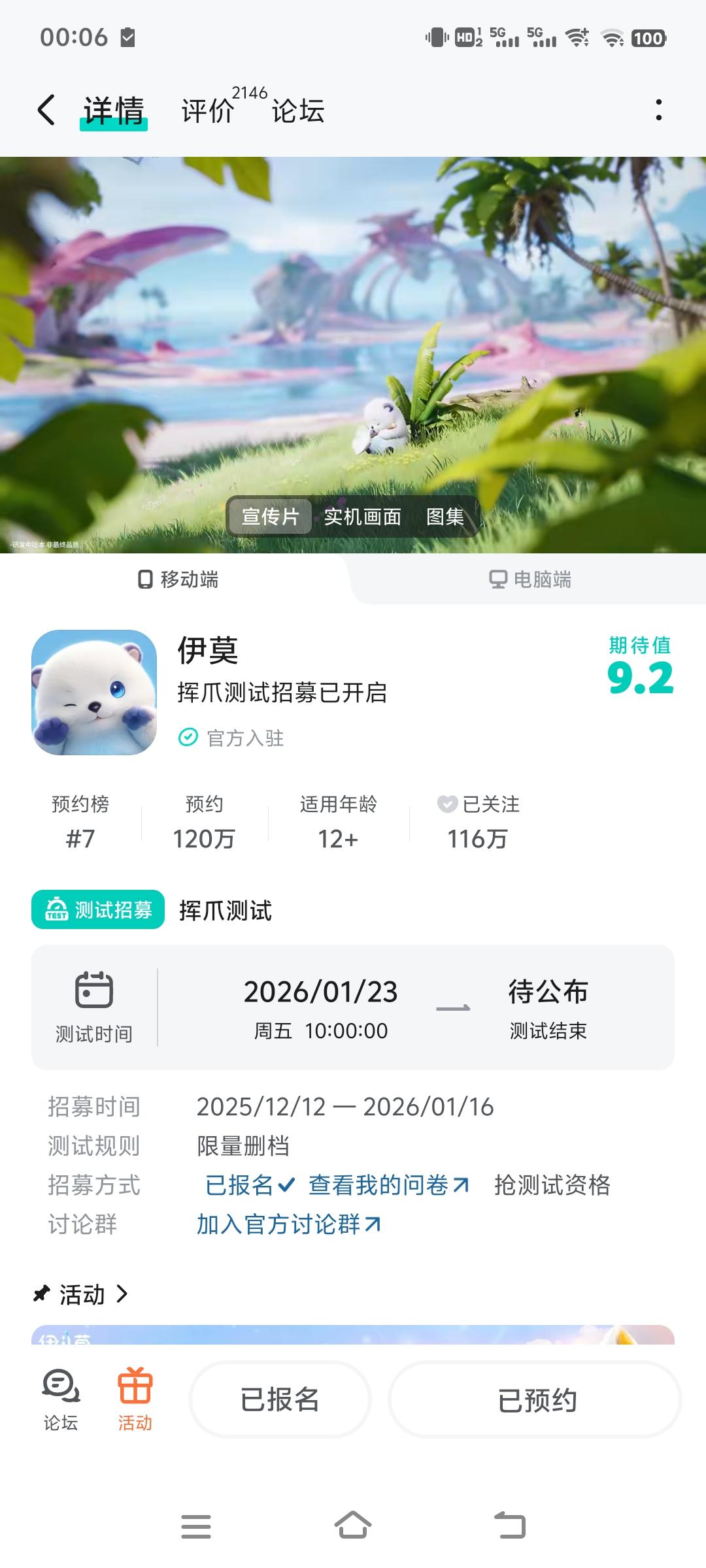 伊莫官方我真求你了,啥时候能给个内测资格?平均每天游戏时间10小时,让我给你测包能测明白的,现在真是游戏荒了不知道干啥了
