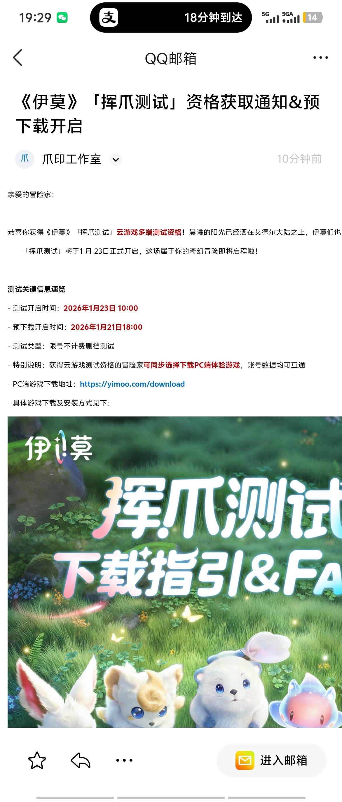 来了来了,真的来了!挥爪测试要开门啦!如何确认是否获得测试资格?怎样下载包体?伊莫爪把手来教៷>ᴗ<៷详细指引请看图片内容,1月23日我们一二三挥爪开测!伊莫最大的心愿就是和你一起冒险!挥爪测试即将开启,预约《伊莫》,公测上线即可获得专属奖励“羞羞獭神秘蛋”~冒险家,我们艾德尔大陆见!#伊莫 #伊莫挥爪测试 #aniimo #有伊莫不emo