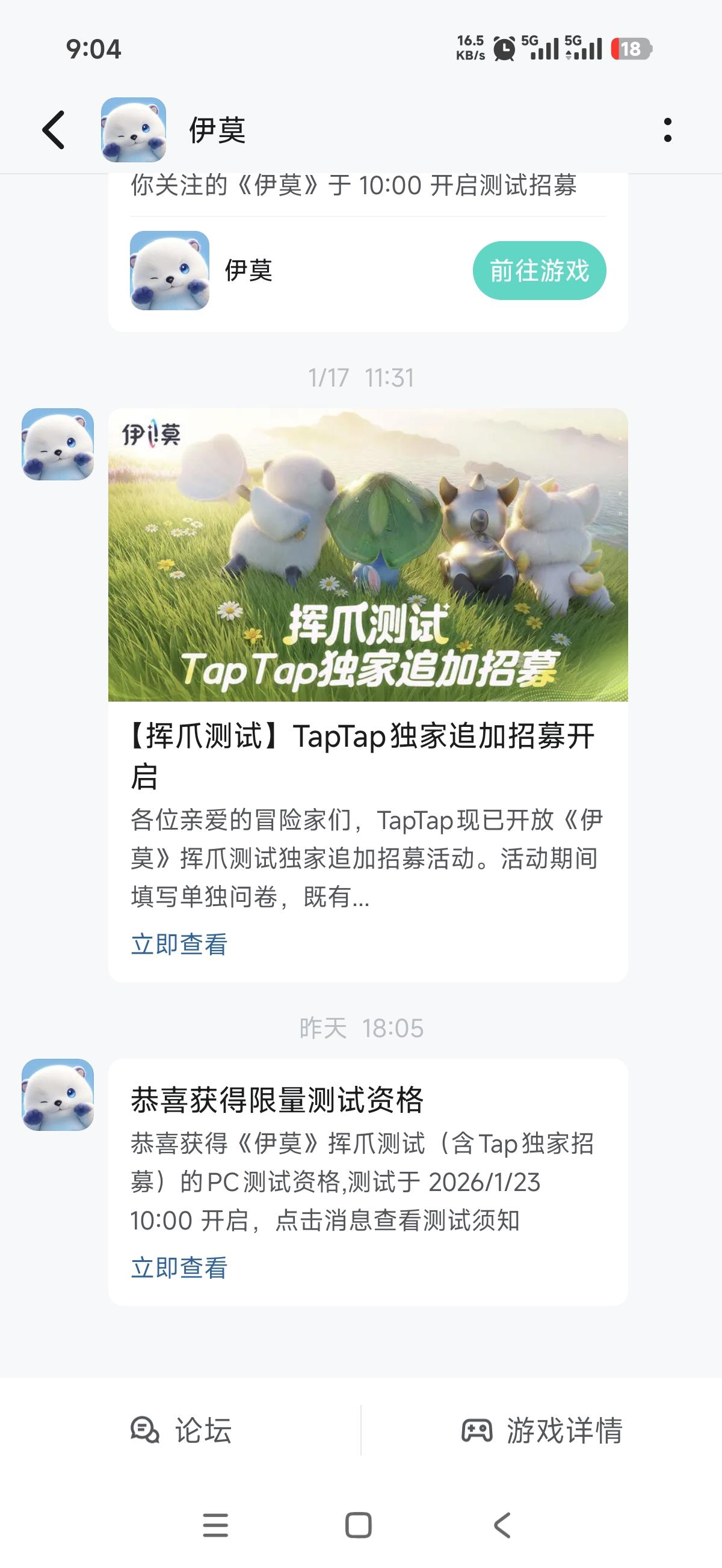《伊莫》挥爪测试招募即将截止,孩子们已经翘首以盼冒险家的到来啦——⏰ 招募截止时间:2026年1月16日 23:59🎮 测试时间:2026年1月23日正式开启⚠️ 重要提醒:招募截止后,测试资格将陆续发放,我们将以短信&邮件形式进行通知,并同步开启预下载;2026年1月21日起,可登录《伊莫》官网查询资格获得情况。官网预约《伊莫》,公测上线即可获得专属奖励“羞羞獭神秘蛋”~冒险家,我