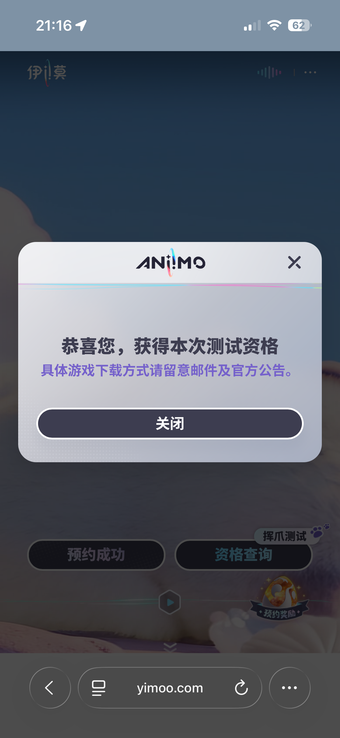 为什么我在公众号里查了有资格,也有短信跟邮箱,怎么在官网上查就没有了#伊莫 #伊莫新游实机首爆 #伊莫举爪测试招募 #伊莫举爪测试