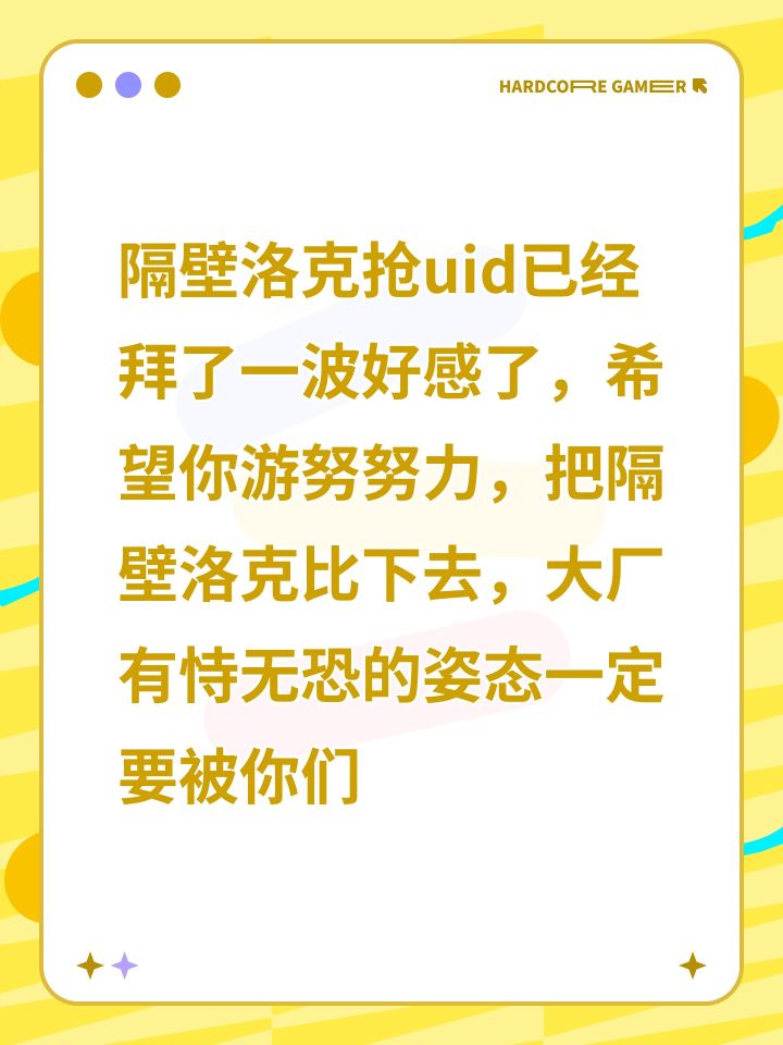 隔壁洛克抢uid已经拜了一波好感了,希望你游努努力,把隔壁洛克比下去,大厂有恃无恐的姿态一定要被你们按下去啊。