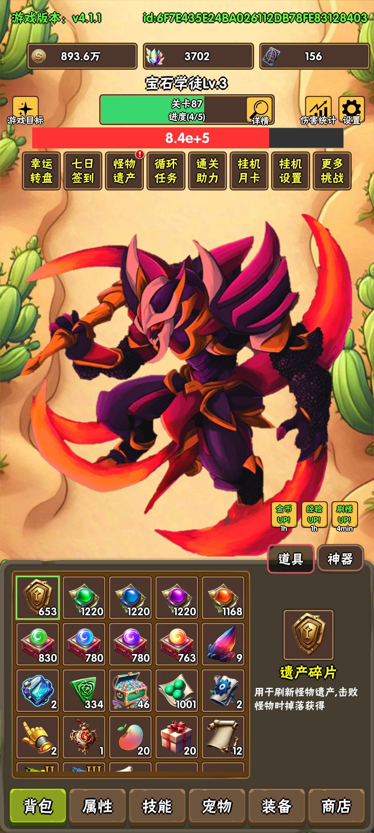 内容方面也不单一。转职、宠物、神器、装备词条、技能搭配(游戏内我们一般叫开花,为了写出这个词我甚至去问了deepseek,喵的谁家好人玩游戏还有这种高级词汇啊)等等,不同的成长路线带来完全不同的游戏体验。再说福利,游戏里广告数量有限(你玩了就知道我多希望每天广告可以无限看了。。。)不看也能玩得下去,看了起步更快一点,其实要不了几天就能拿到免广告神器,到时候广告奖励一样全拿。另外,氪金当然能迅速起飞,毕竟钞能力提前获取了本不该在这个阶段获取的资源,但不氪也一样能爽,所有氪金获取的东西理论上都可以白嫖,顶多就是多花点时间(都玩放置游戏了,除了前期需要相对频繁地照看,后期挂机时间可以离线可以云手机可以电脑模拟器,又不强制占用手机,花点时间怎么了,不就是打发时间的嘛)